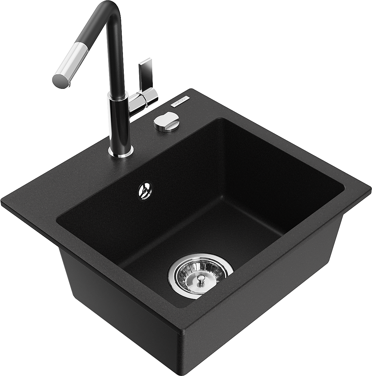Mexen Milo granitinė vieno dubens plautuvė su Flora virtuviniu maišytuvu, juoda - 6505-77-670401-07