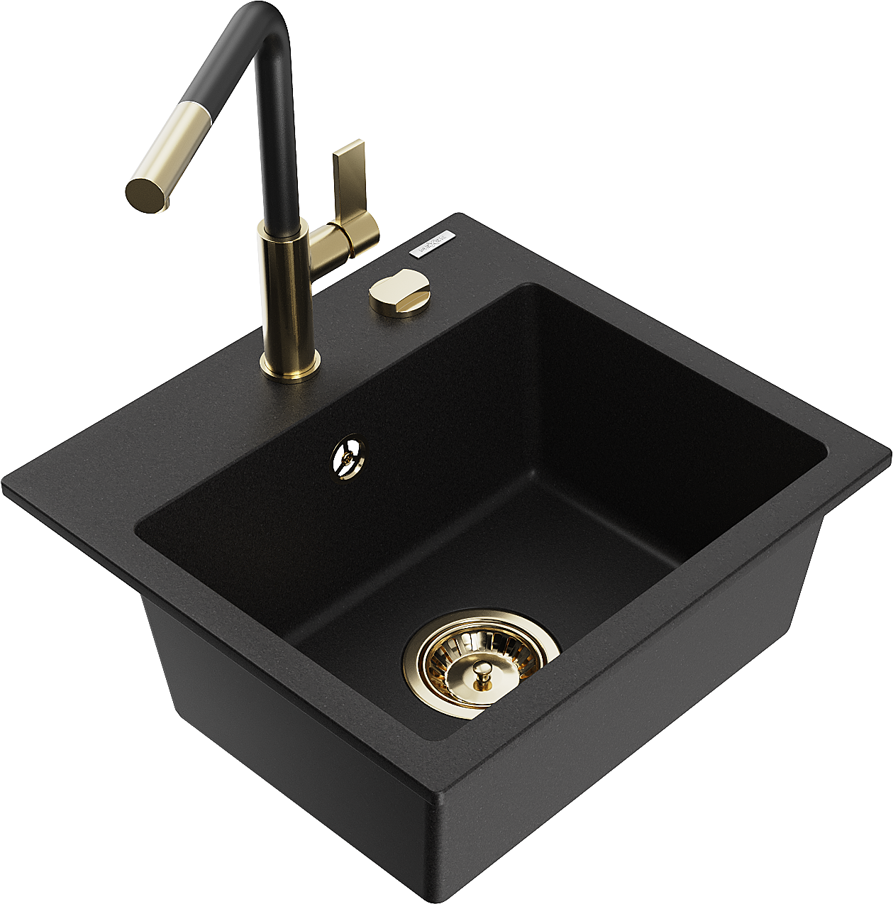 Mexen Milo granitinis plautuvas su vienu dubeniu ir Flora virtuviniu maišytuvu, juodas - 6505-77-670401-57-G
