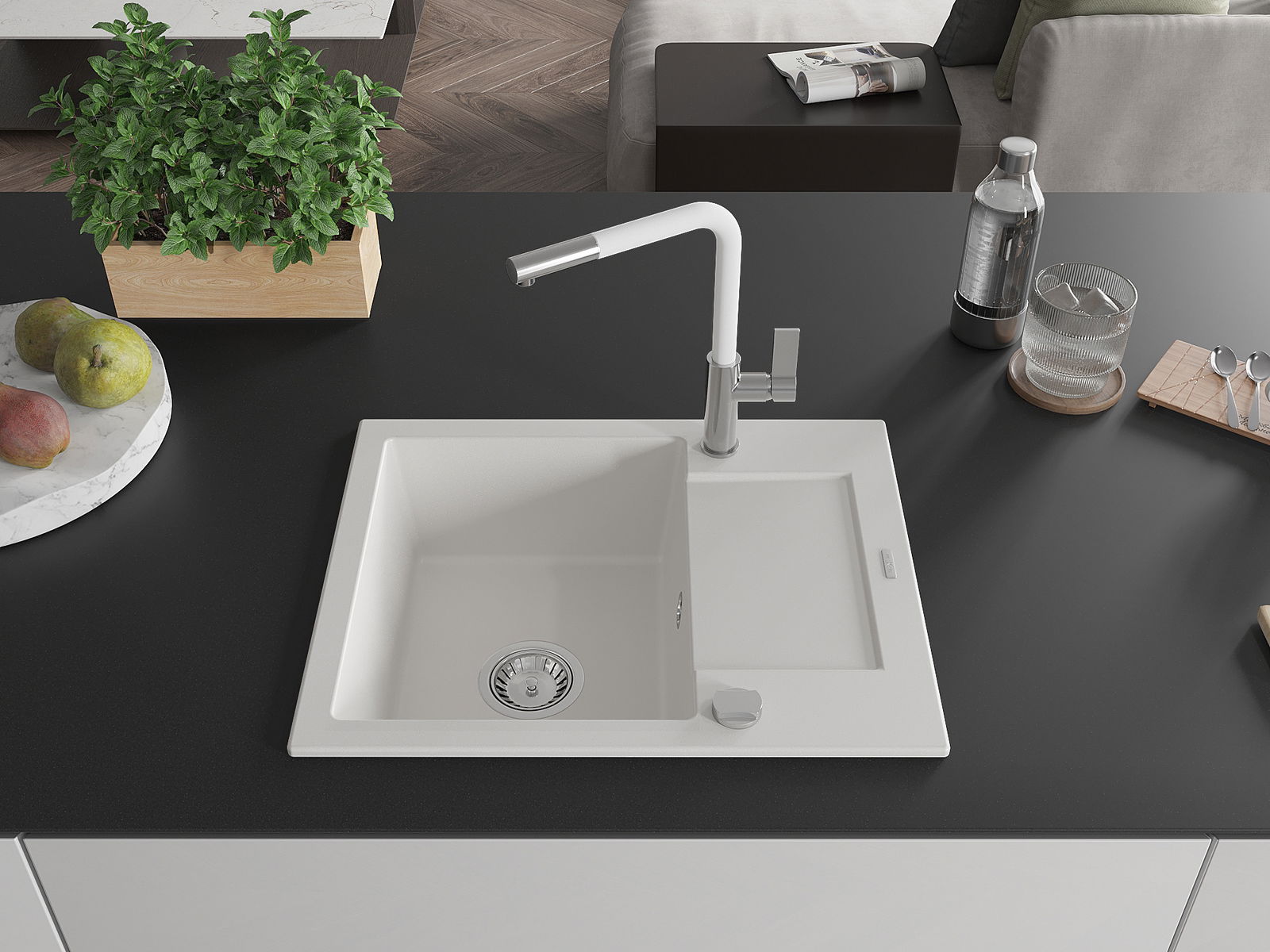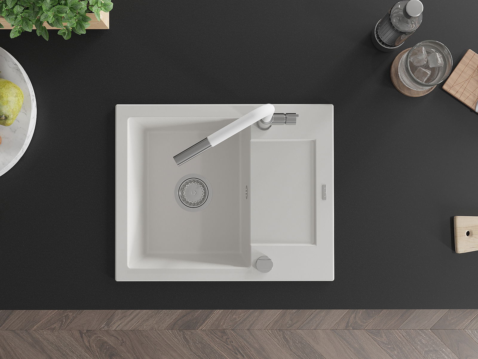 Kriauklės paviršius yra atsparus dėmėms ir spalvos pokyčiams, todėl jį lengva prižiūrėti ir jis išlaiko savo spalvą ilgą laiką. Estetiškai ir praktiškai papildo kiekvieną virtuvę.
