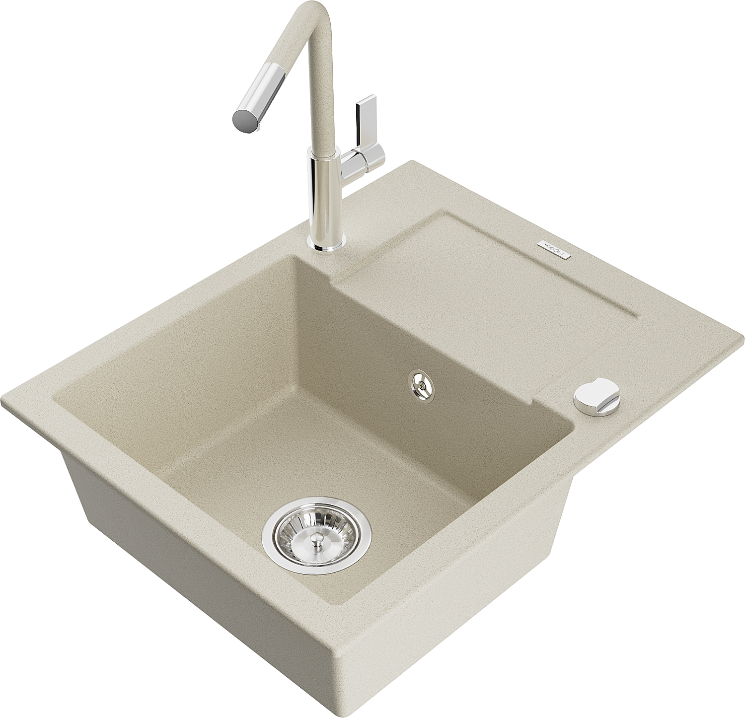 Mexen Enzo granitinė plautuvė su 1 skyreliu ir nutekėjimo paviršiumi bei Flora virtuvės maišytuvu, smėlinė - 6506-69-670401-09