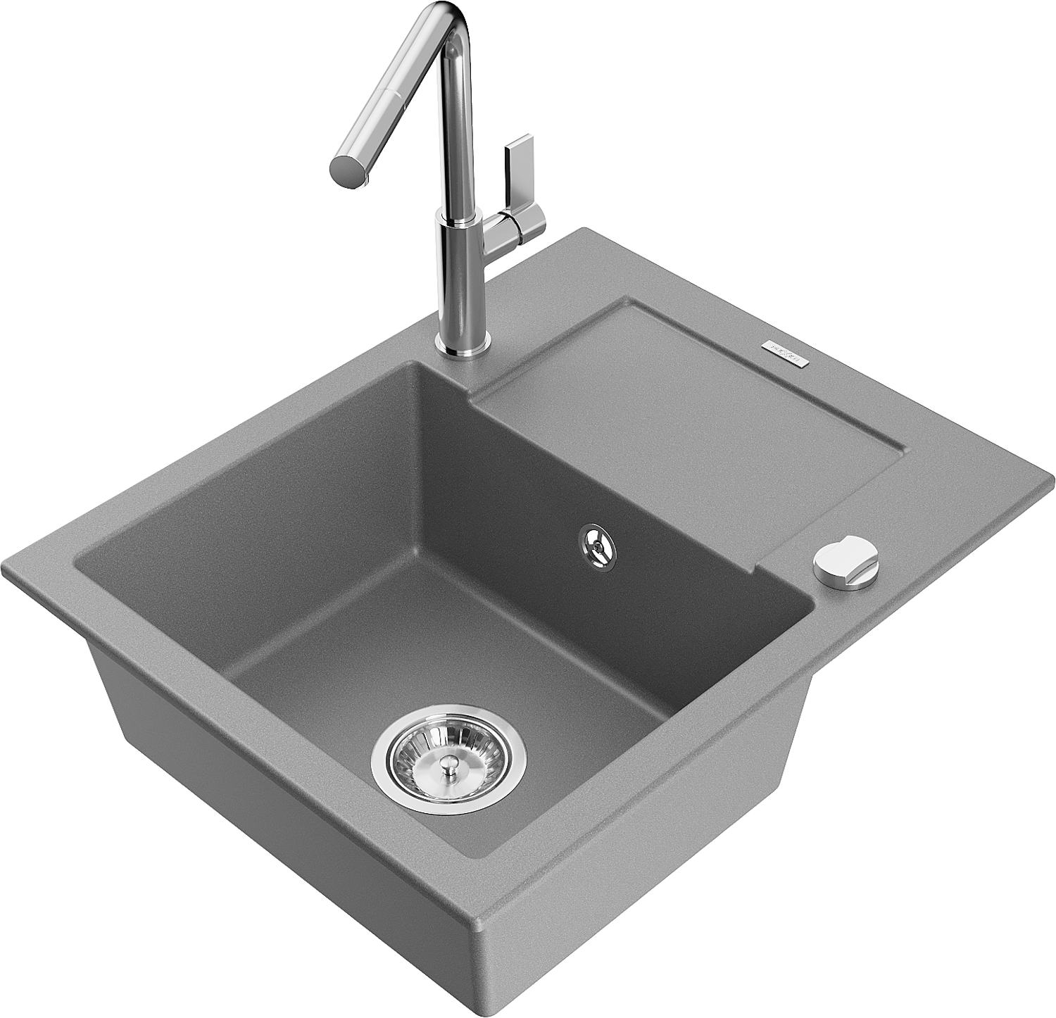 Mexen Enzo granito virtuvės kriauklė, 1 dubuo su nusausintuvu ir virtuvės maišytuvu Flora, pilka - 6506-71-670401-00