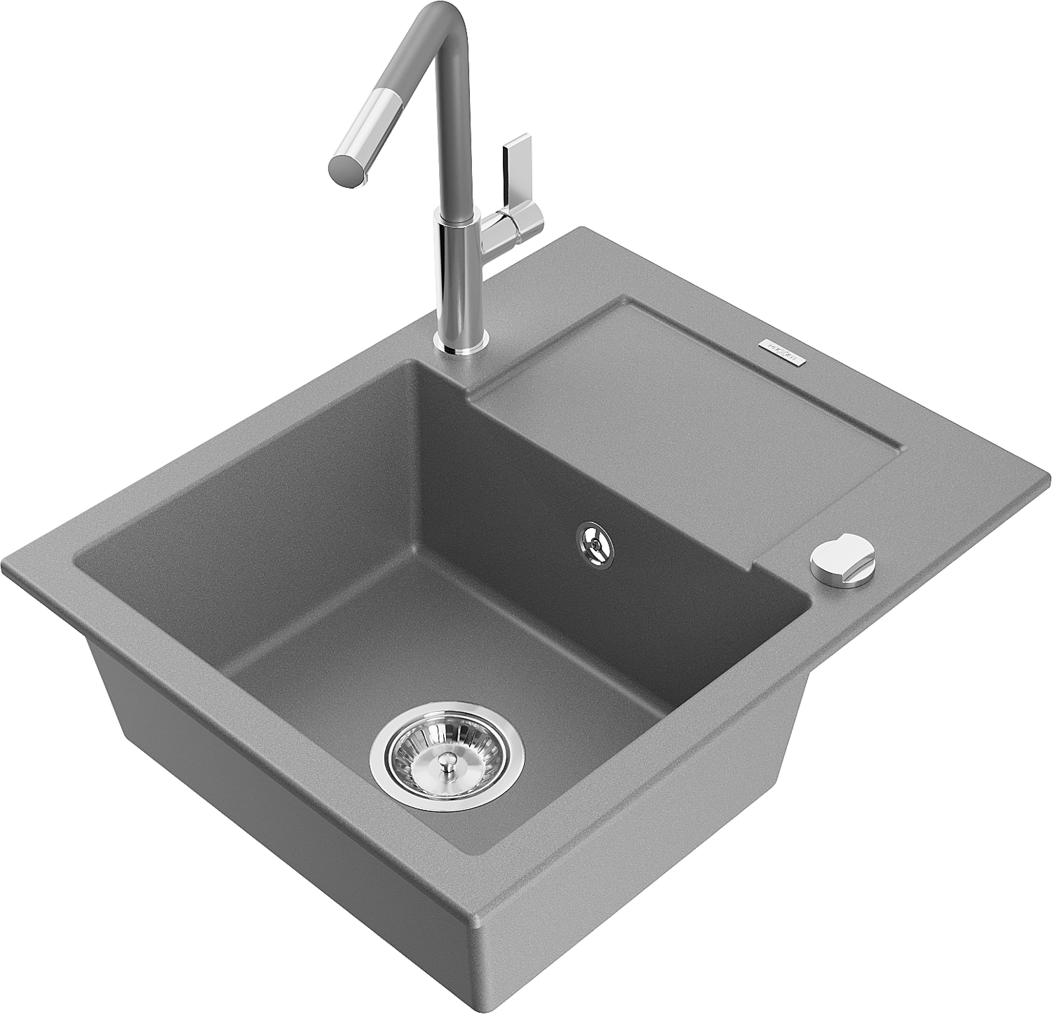 Mexen Enzo vienos kameros granito virtuvės plautuvė su nubėgimo zona ir Flora virtuvės maišytuvu, pilka - 6506-71-670401-06