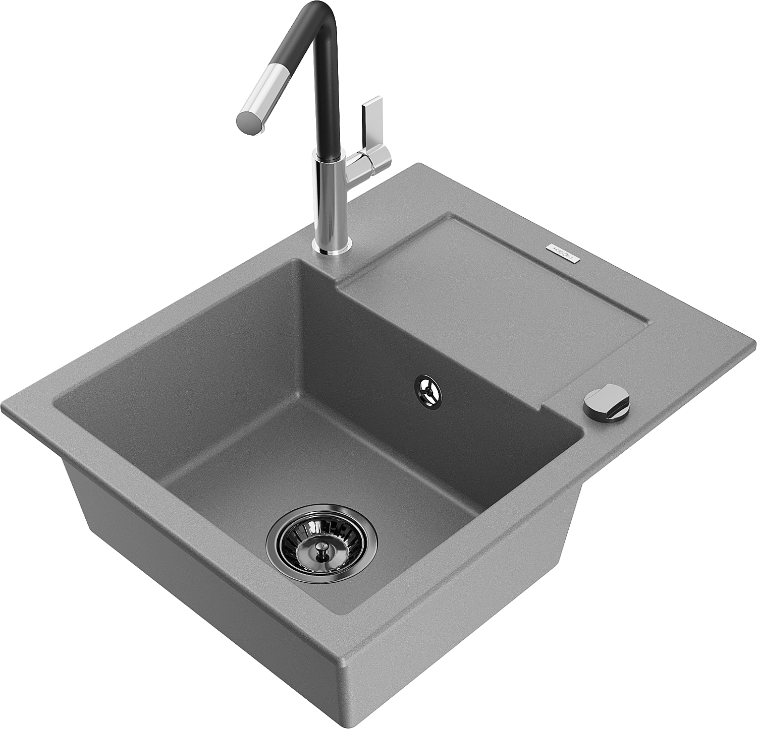 Mexen Enzo granito virtuvės kriauklė, vienos sekcijos su lašintuvu ir virtuvės čiaupu Flora, pilka - 6506-71-670401-07-B