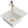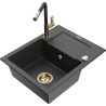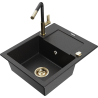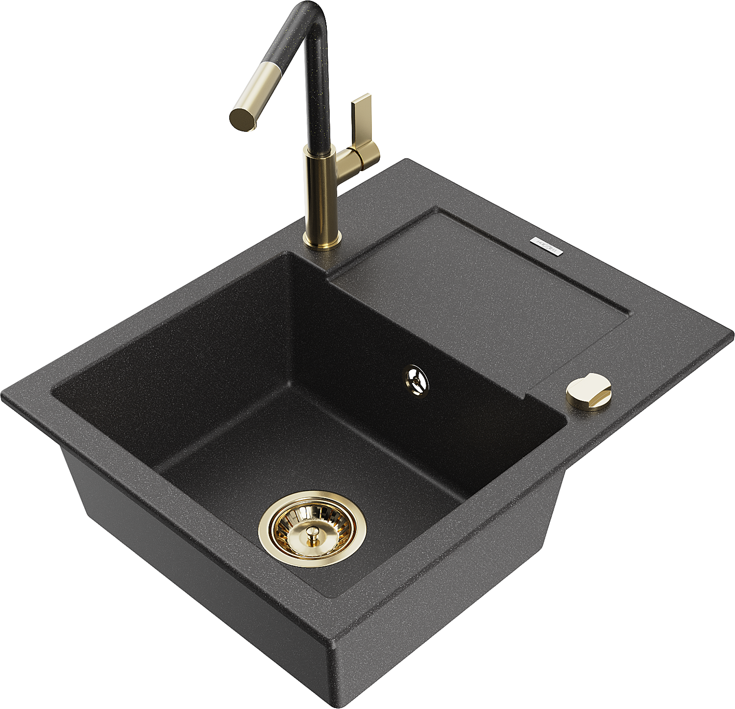 Mexen Enzo vienos kameros granitinė plautuvė su nusausintuvu ir Flora virtuviniu maišytuvu, juodas su taškeliais