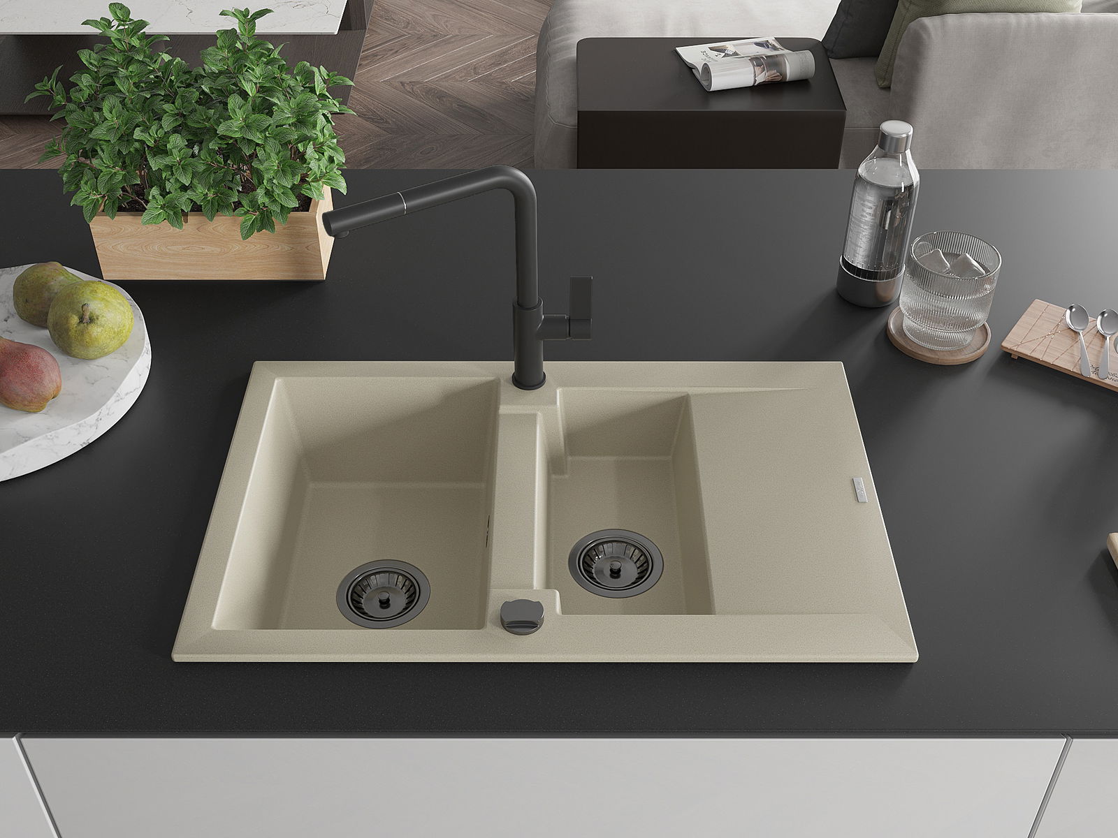 Kriauklės paviršius yra atsparus dėmėms ir spalvos pokyčiams, todėl jį lengva prižiūrėti ir jis išlaiko savo spalvą ilgą laiką. Estetiškai ir praktiškai papildo kiekvieną virtuvę.