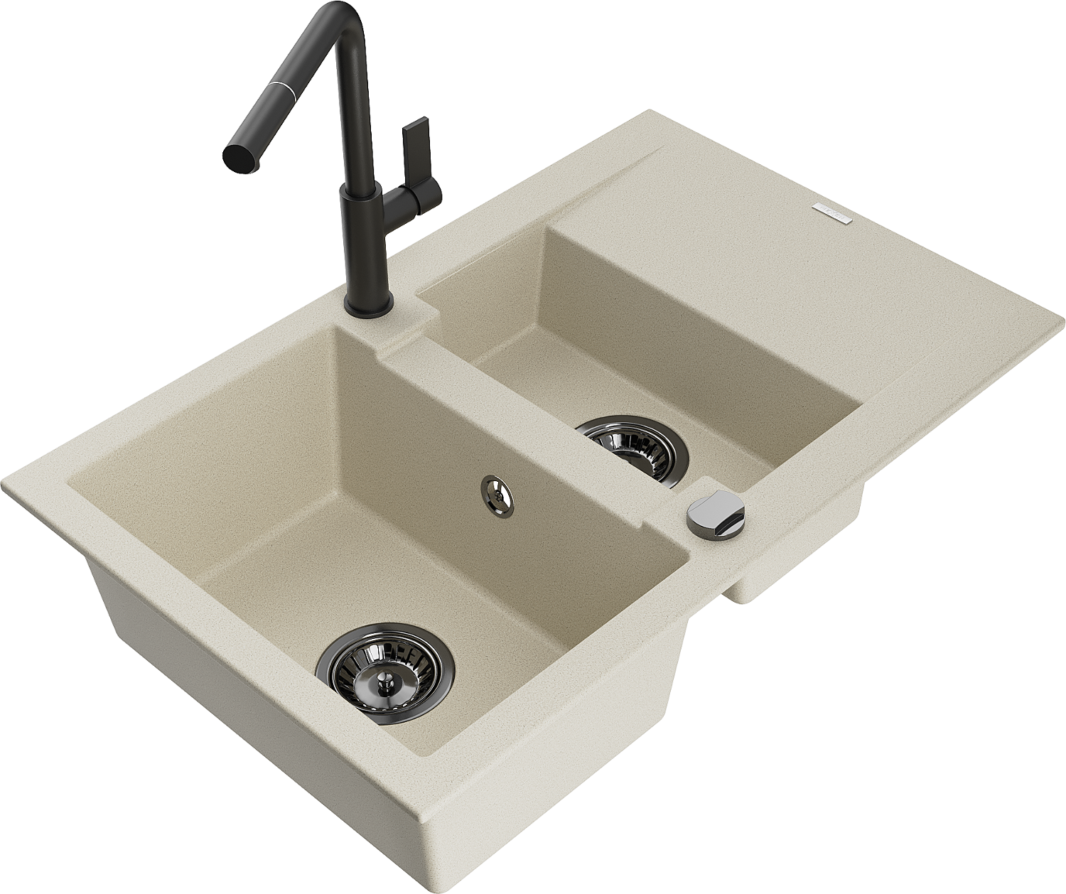 Mexen Gaspar granitinis plautuvės 1,5 kamerinis su varvėtuvu ir Flora virtuvės maišytuvu, smėlio spalvos - 6507-69-670401-70-B
