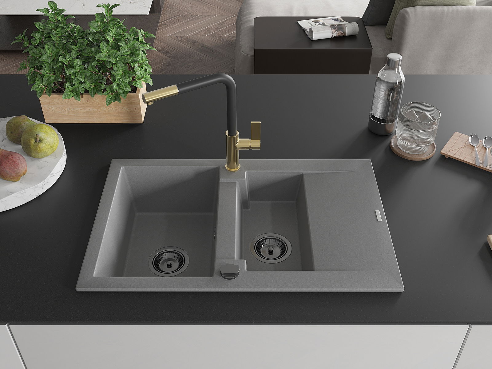 Kriauklės paviršius yra atsparūs dėmėms ir spalvos pasikeitimui, dėl kurio lengva valyti ir ilgą laiką išlaikyti savo spalvą. Estetinis ir praktiškai papildantis kiekvieną virtuvę.
