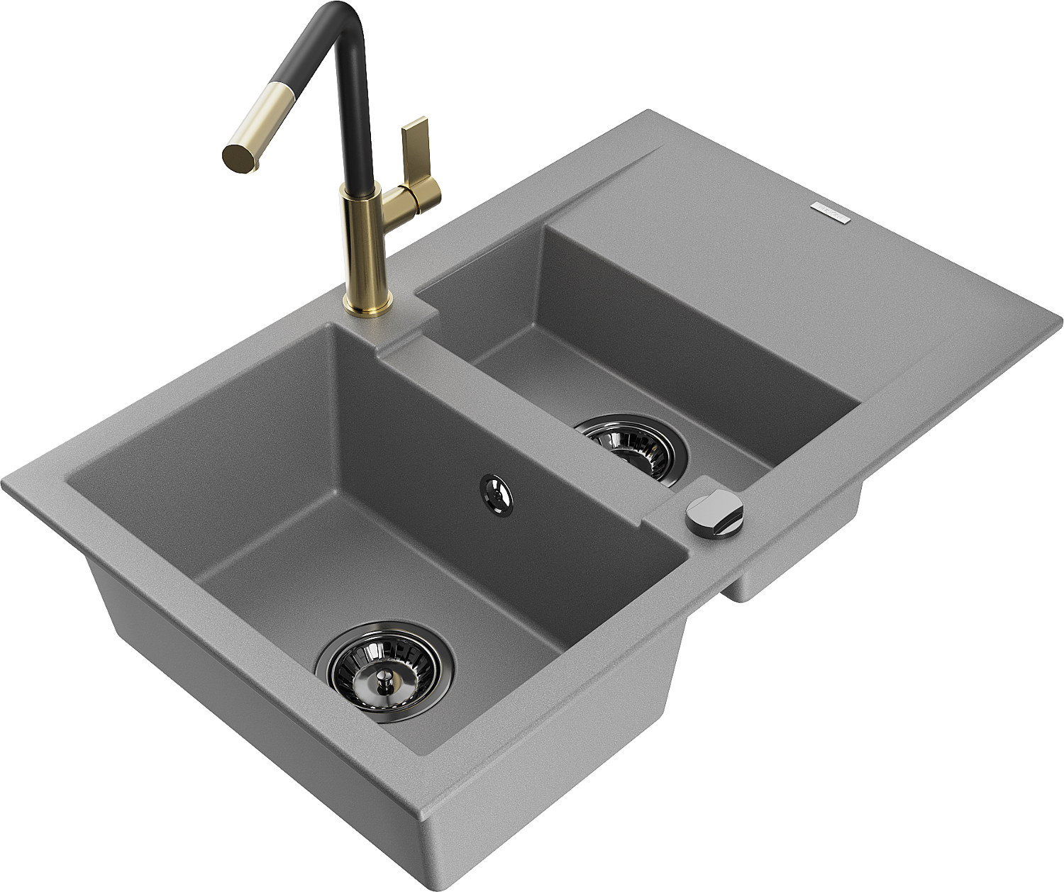 Mexen Gaspar granito plautuvė 1,5 kamerų su drenažu ir virtuviniu maišytuvu Flora, pilka - 6507-71-670401-57-B