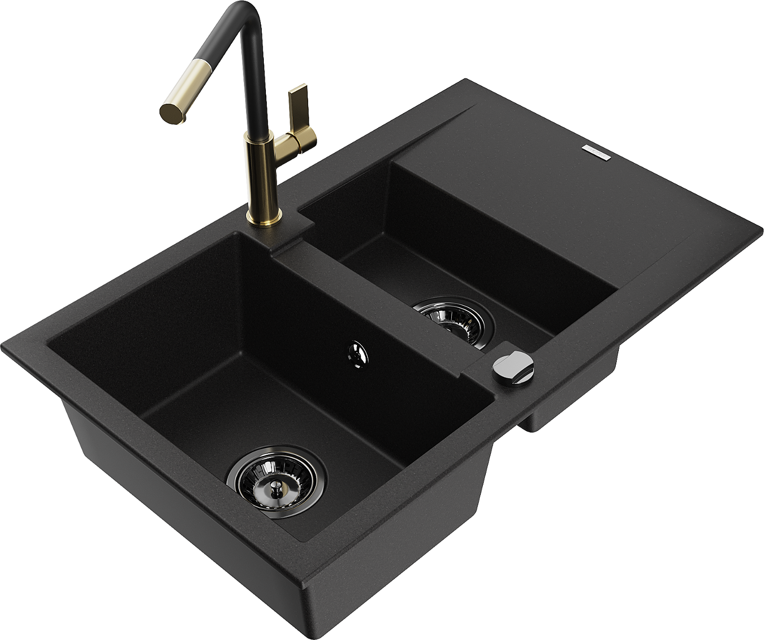 Mexen Gaspar granito plautuvė 1,5 skyrių su nusausintuvu ir virtuvės maišytuvu Flora, juodas - 6507-77-670401-57-B