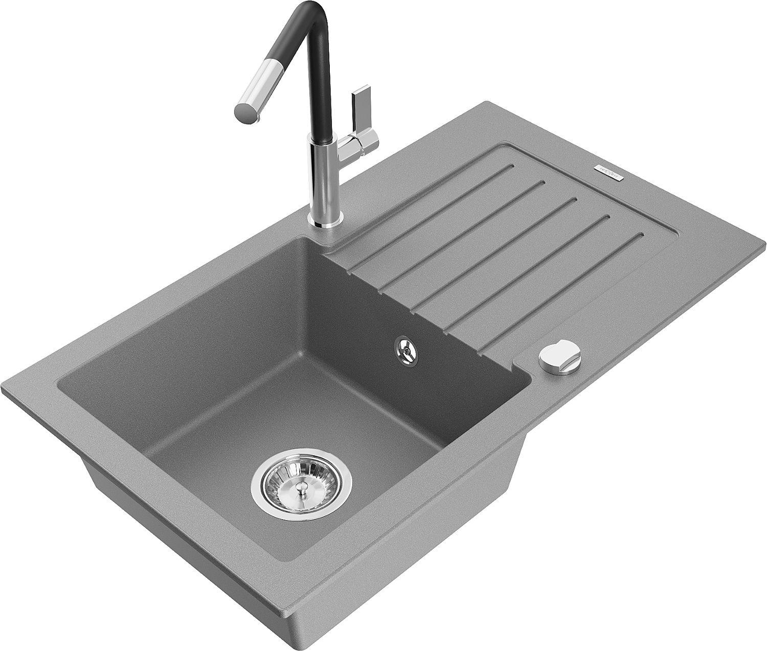Mexen Pablo granito plautuvė 1 skyrius su džiaustykle ir Flora virtuviniu maišytuvu, pilkas - 6510-71-670401-07