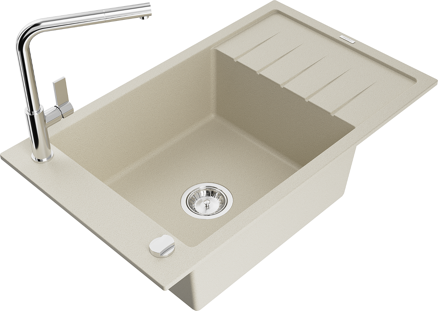 Mexen Elias granito virtuvės kriauklė su 1 sąlyga ir virtuviniu maišytuvu Flora, smėlinė - 6511-69-670401-00