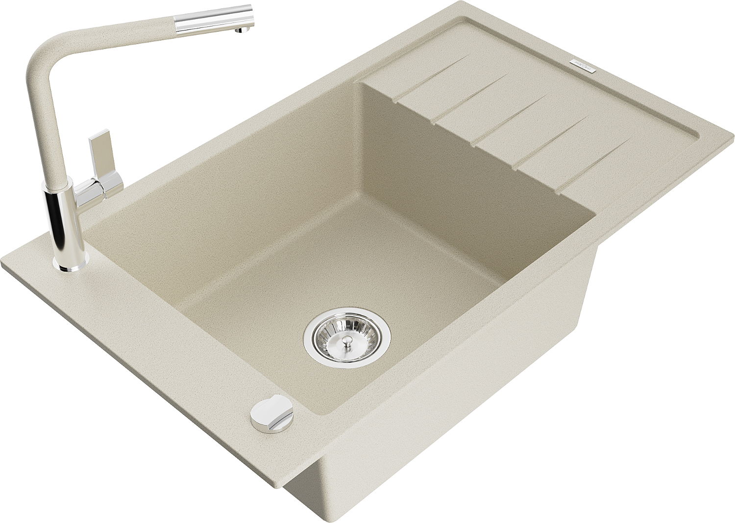 Mexen Elias granito plautuvė su 1 kamera, lašėjimo vieta ir Flora virtuviniu čiaupu, smėlio spalvos - 6511-69-670401-09