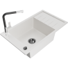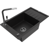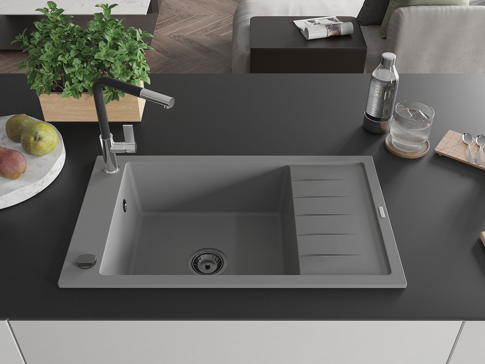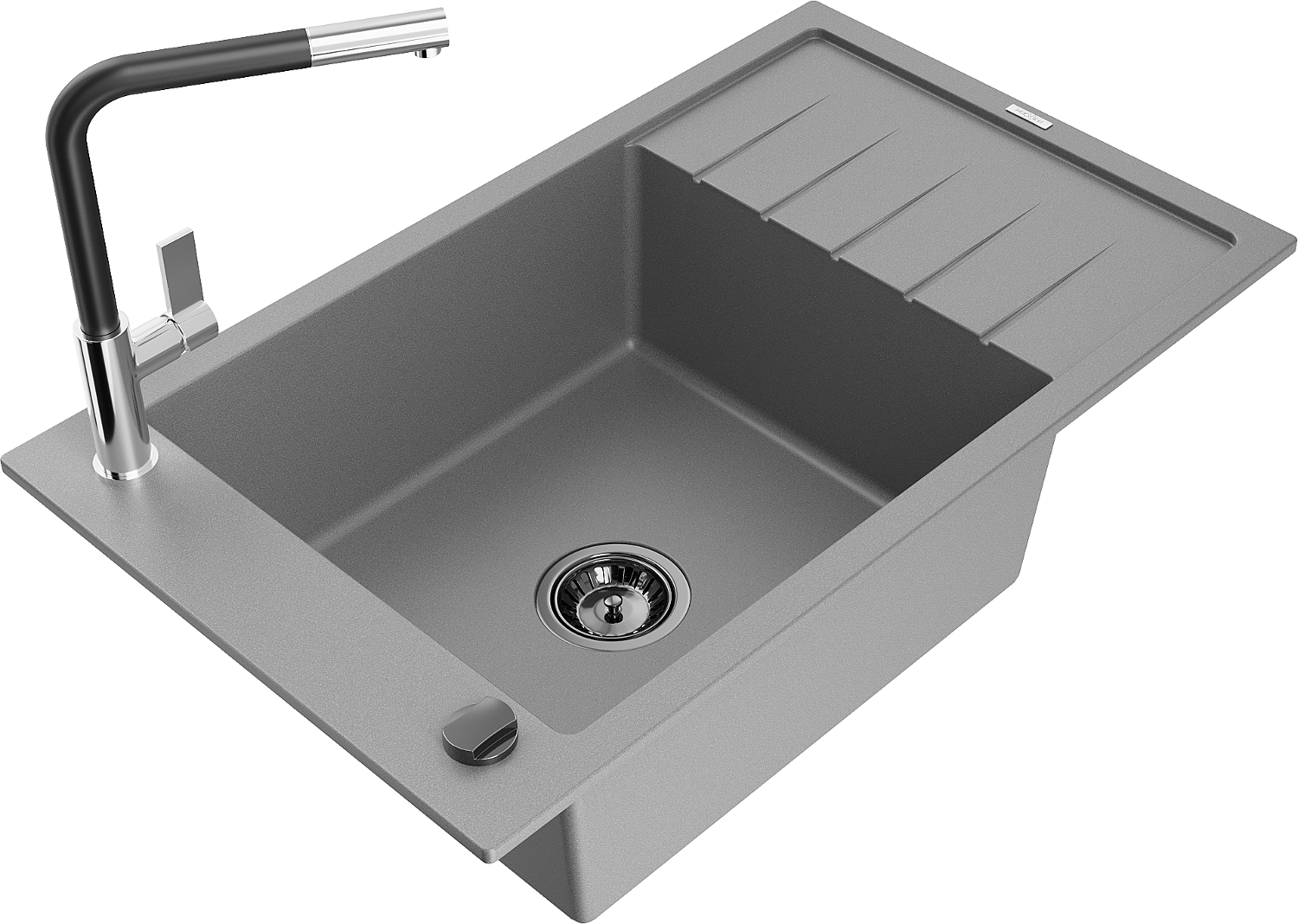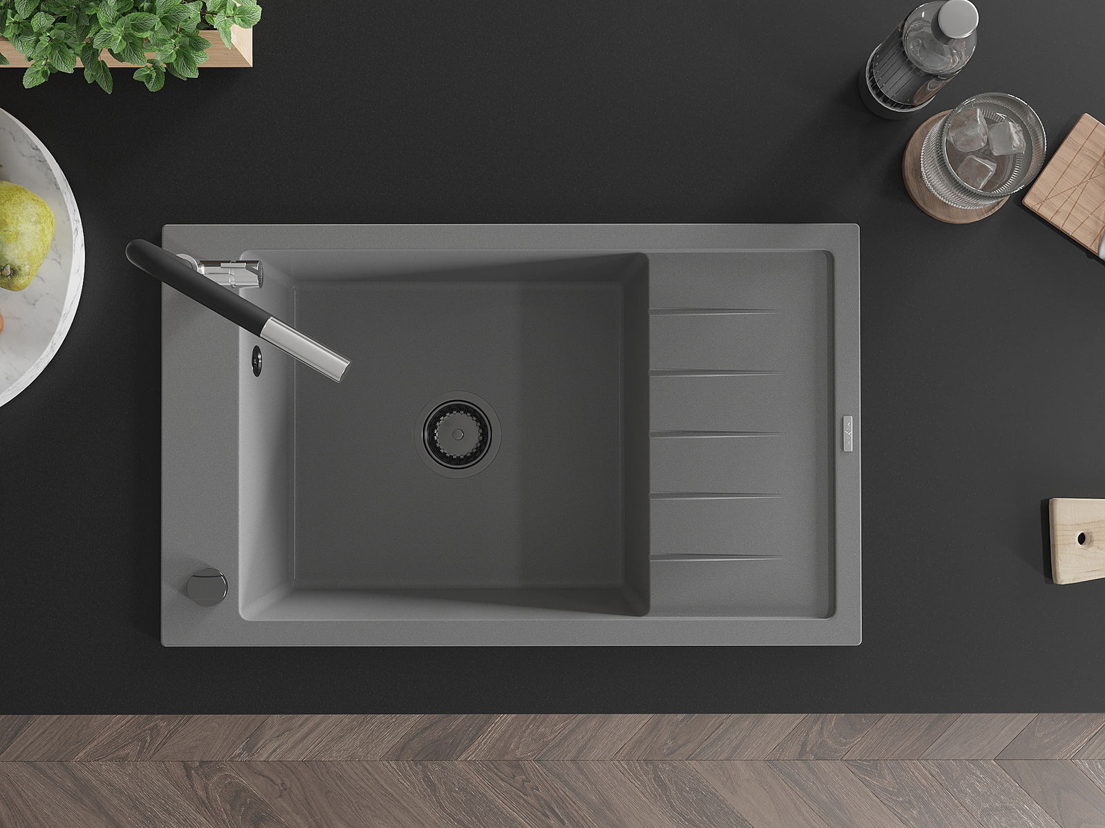 Mexen Elias granito plautuvė su 1 skyriumi ir nutekėjimu bei virtuviniu maišytuvu Flora, pilka - 6511-71-670401-07-B