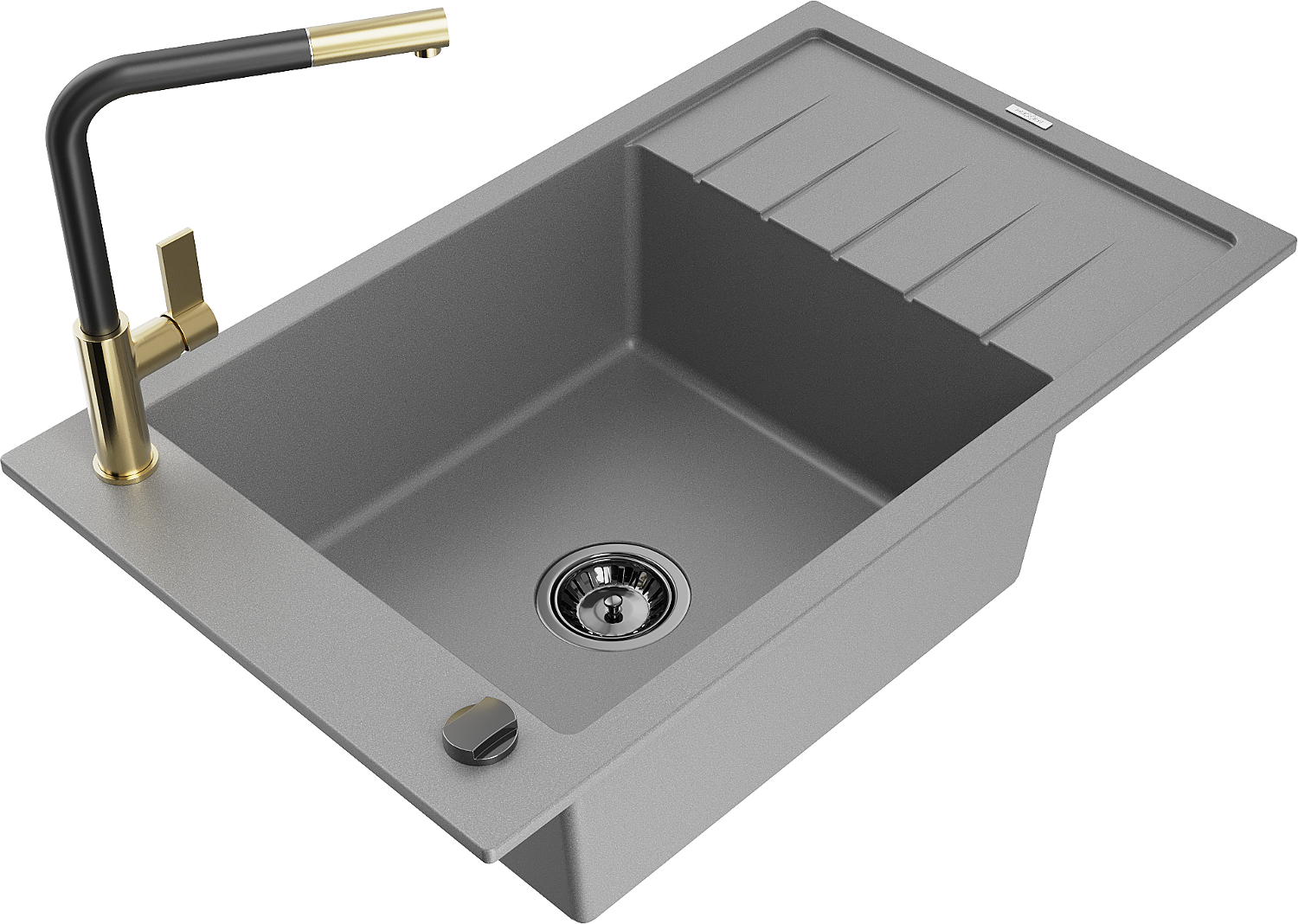 Mexen Elias granitinė vienos kameros kriauklė su nutekėjimu ir Flora virtuviniu maišytuvu, pilka - 6511-71-670401-57-B