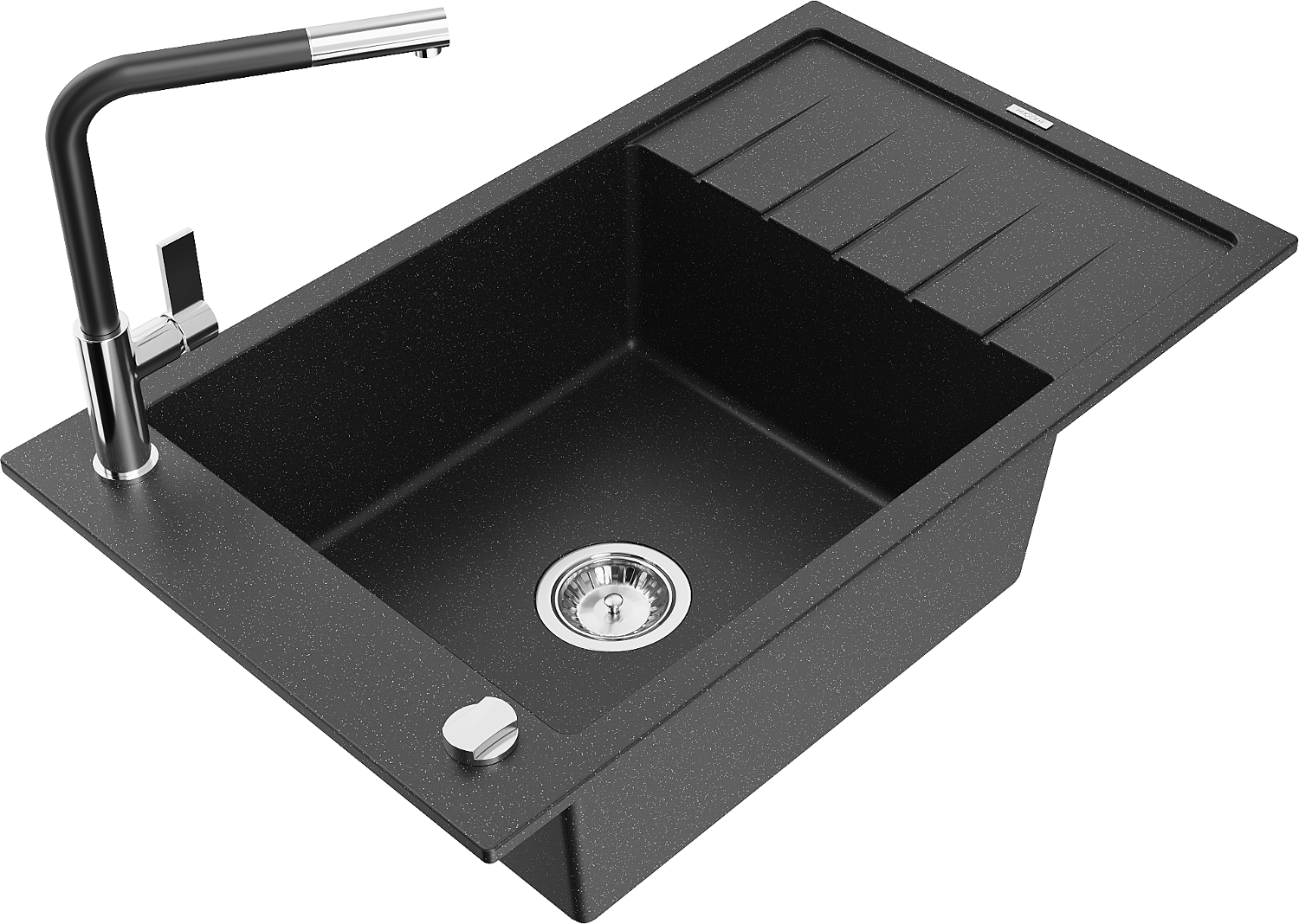 Mexen Elias granitinė viena atskirų sekcijų plautuvė su nuvarvėjimo plokštuma ir virtuvės maišytuvu Flora,