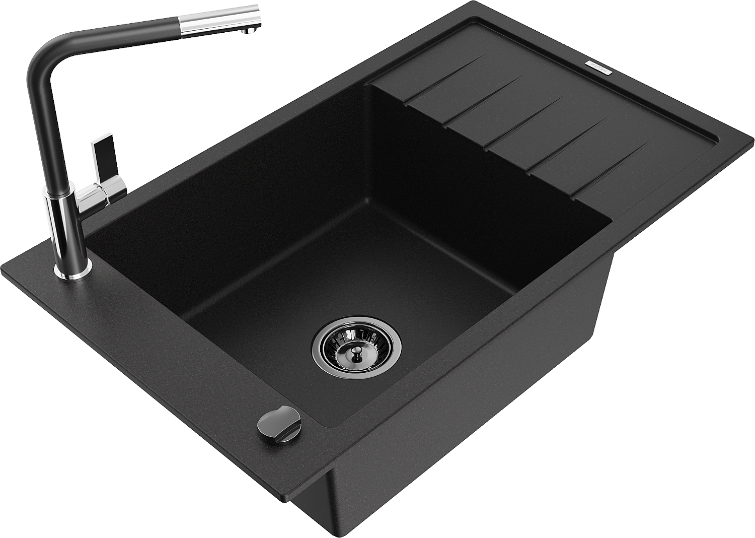 Mexen Elias granitinis plautuvė 1-dalies su varvėtuvu ir virtuvės maišytuvu Flora, juodas - 6511-77-670401-07-B