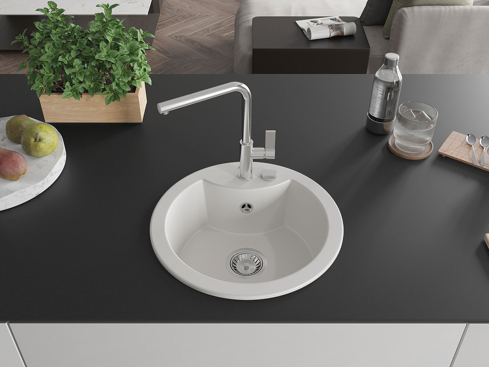 Kriauklės paviršius yra atsparūs dėmėms ir spalvos pasikeitimui, dėl kurio lengva valyti ir ilgą laiką išlaikyti savo spalvą. Estetinis ir praktiškai papildantis kiekvieną virtuvę.