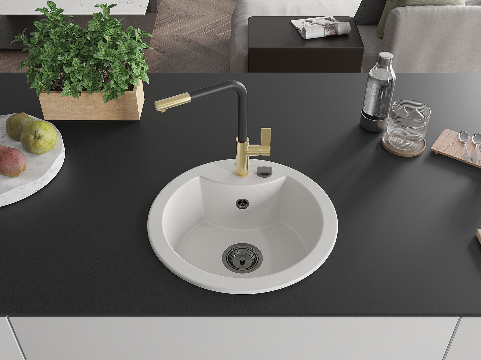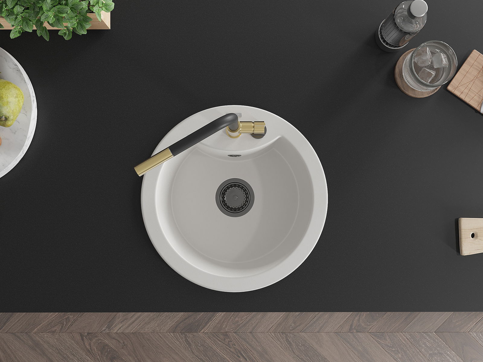 Kriauklės paviršius yra atsparūs dėmėms ir spalvos pasikeitimui, dėl kurio lengva valyti ir ilgą laiką išlaikyti savo spalvą. Estetinis ir praktiškai papildantis kiekvieną virtuvę.
