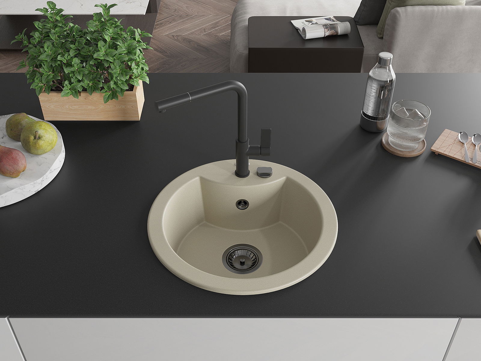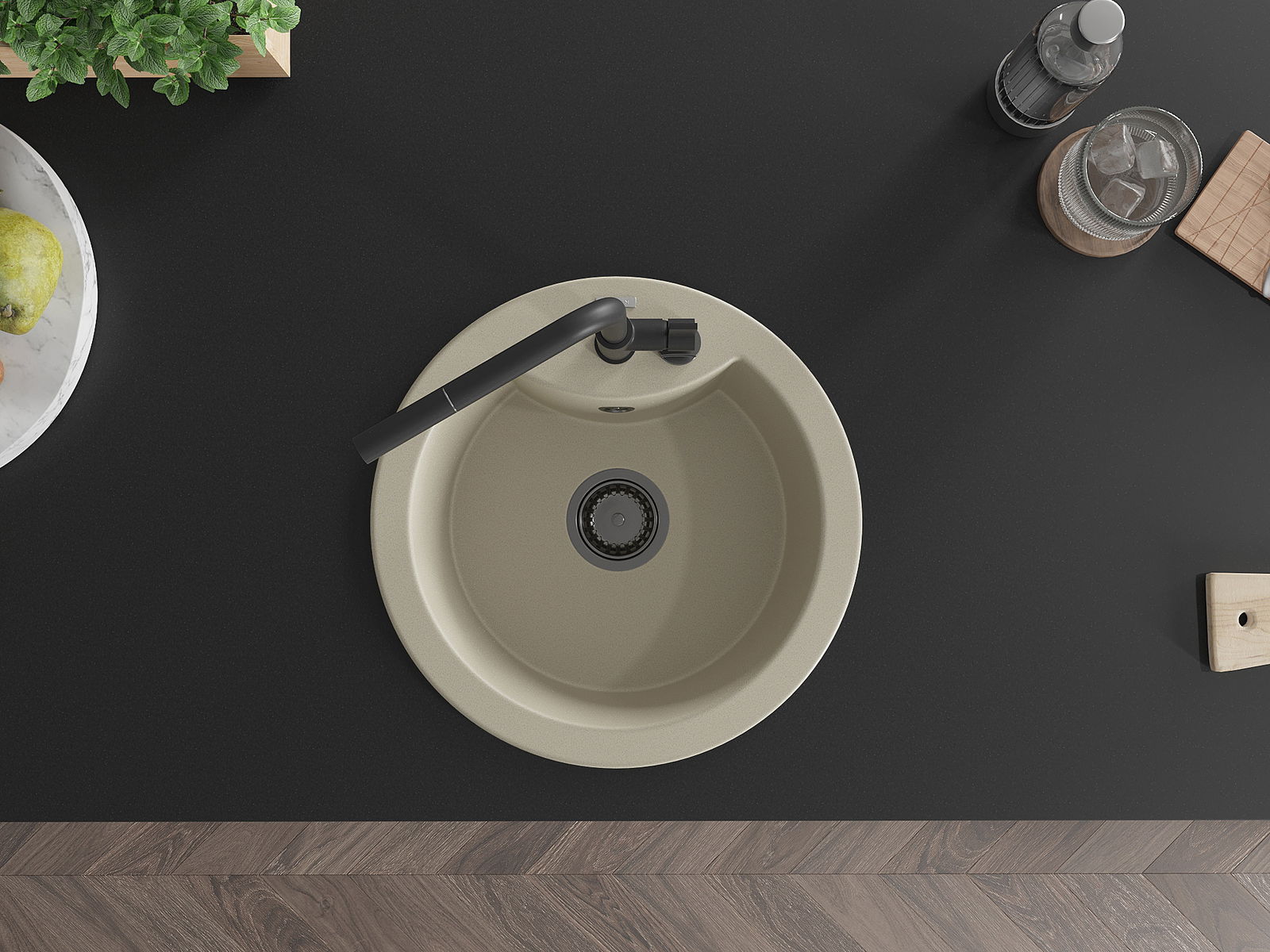 Kriauklės paviršius yra atsparūs dėmėms ir spalvos pasikeitimui, dėl kurio lengva valyti ir ilgą laiką išlaikyti savo spalvą. Estetinis ir praktiškai papildantis kiekvieną virtuvę.