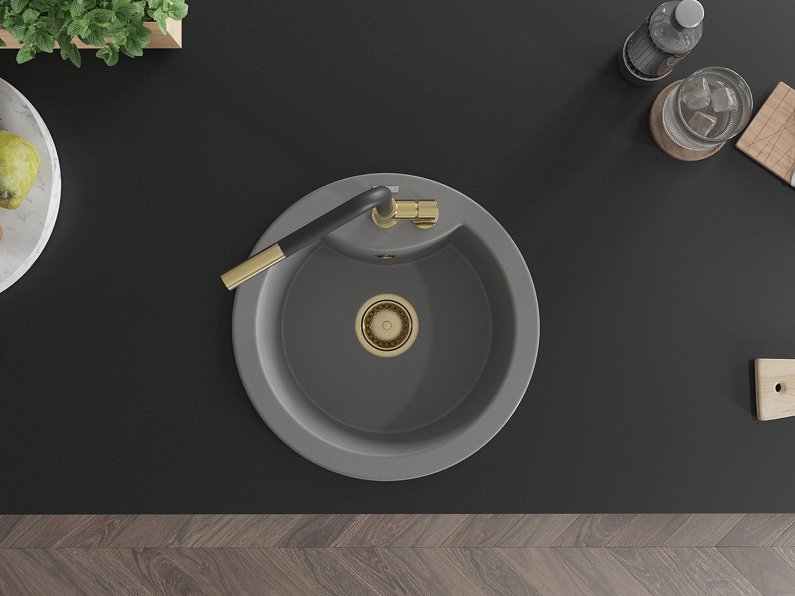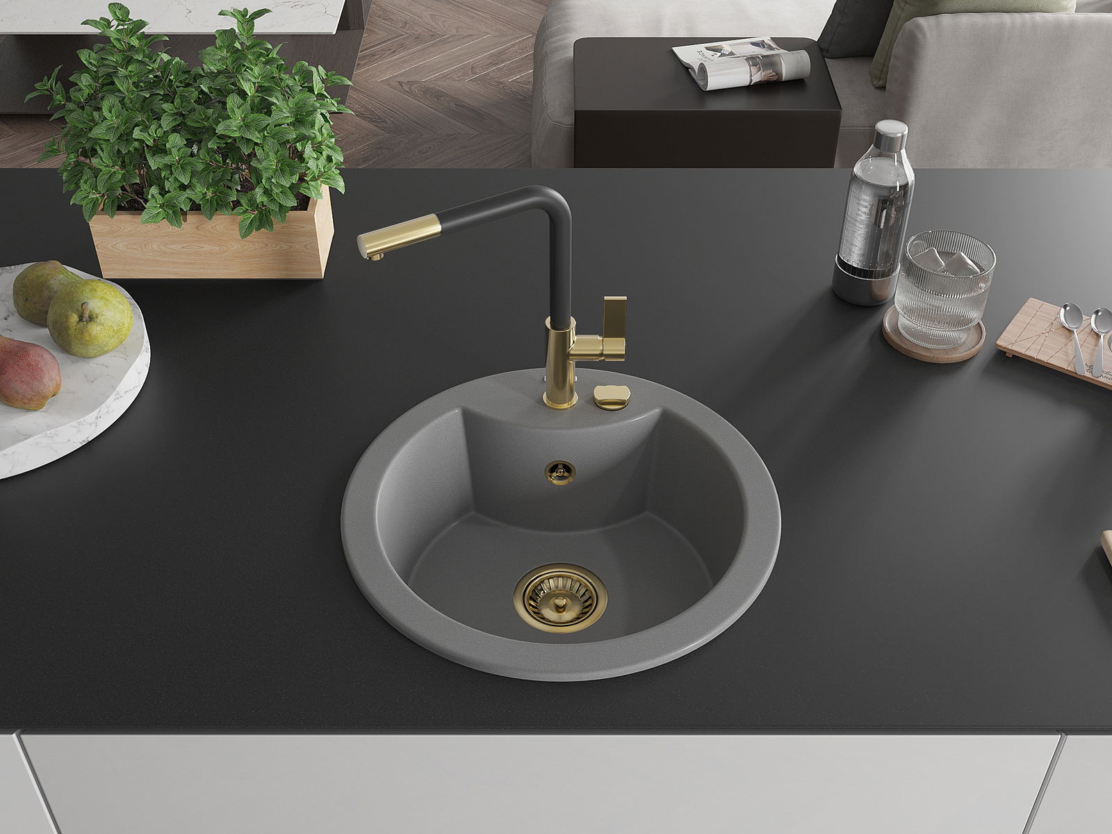 Mexen Diego vienos kriauklės iš granito plautuvė su Flora virtuviniu maišytuvu, pilka - 6512-71-670401-57-G