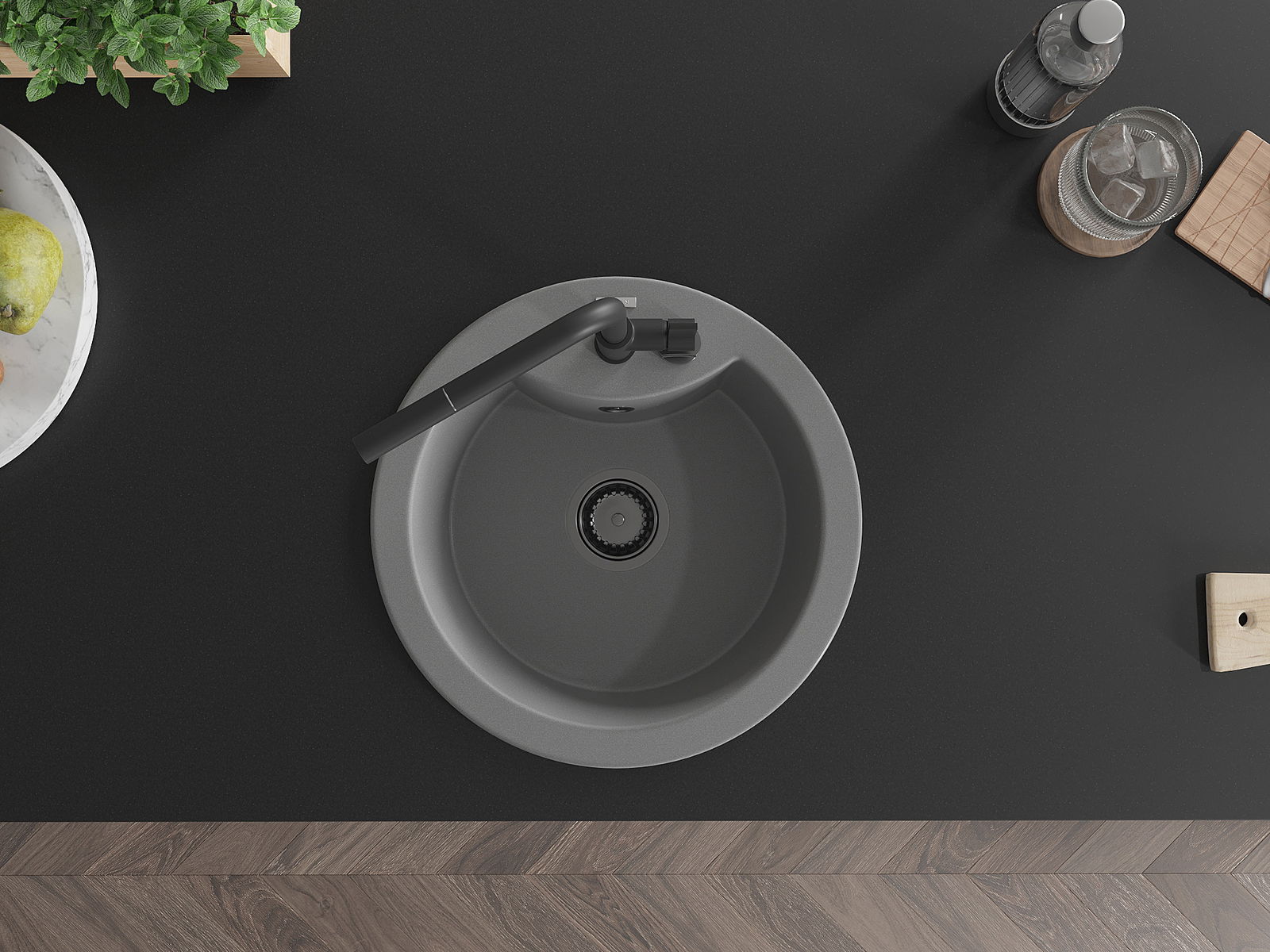 Mexen Diego vienos kameros granito virtuvės kriauklė su Flora virtuviniu maišytuvu, pilka - 6512-71-670401-70-B
