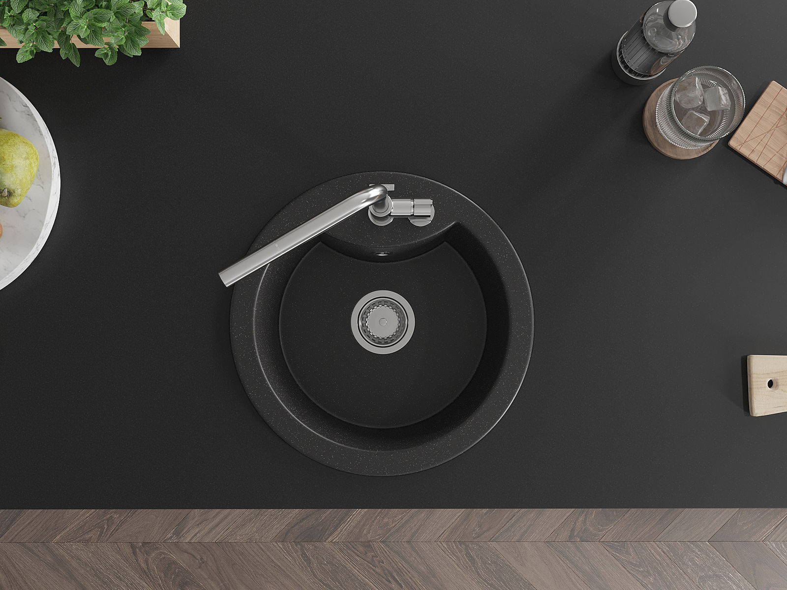 Mexen Diego granito plautuvė su 1 skyriumi ir Flora virtuviniu maišytuvu, juoda/sidabrinė metalinė - 6512-73-670401-00