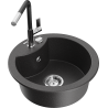 Mexen Diego granito plautuvė vienos kameros su Flora virtuvės maišytuvu, juoda/sidabrinis metalikas - 6512-73-670401-07