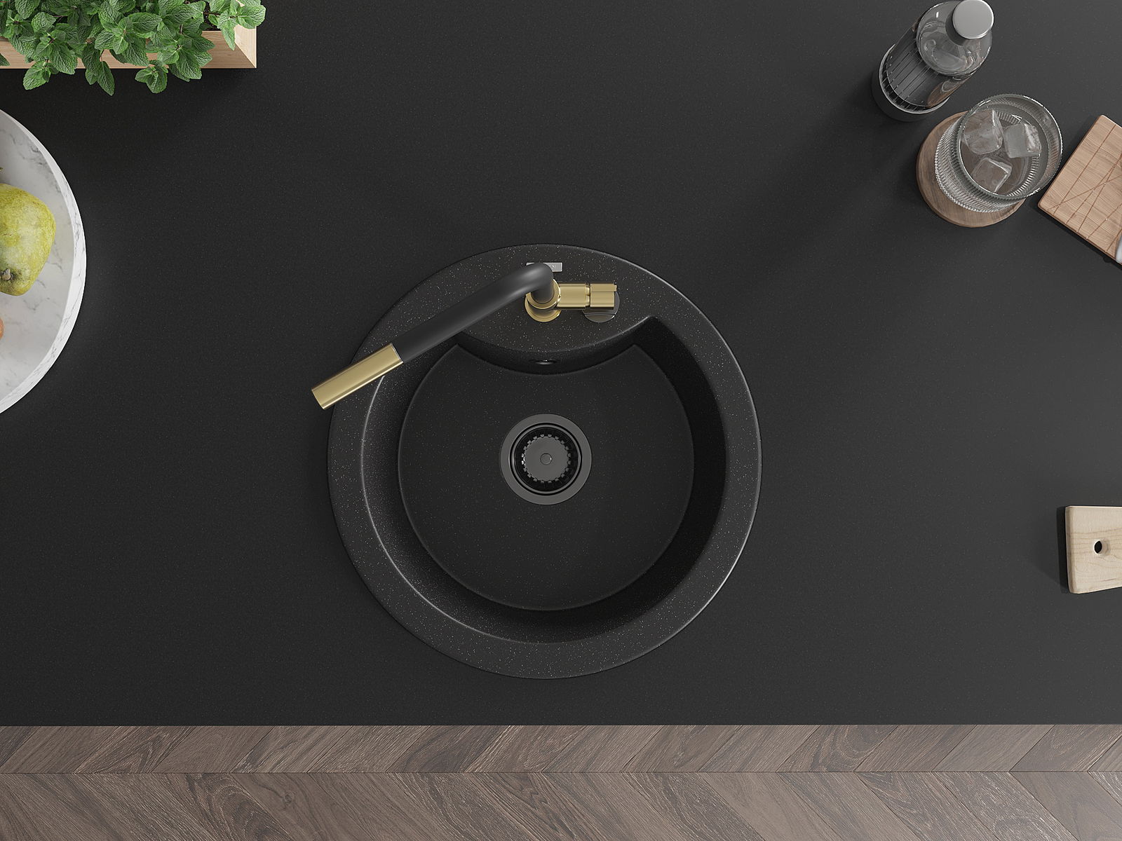 Mexen Diego vienos kameros granito plautuvė su virtuviniu maišytuvu Flora, juodas/sidabrinis metalikas - 6512-73-670401-57-B