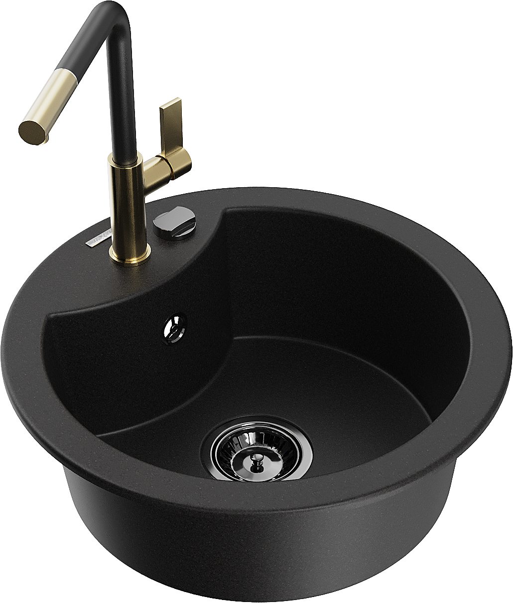 Mexen Diego granitinis vienos kameros plautuvė su Flora virtuvės maišytuvu, juoda - 6512-77-670401-57-B