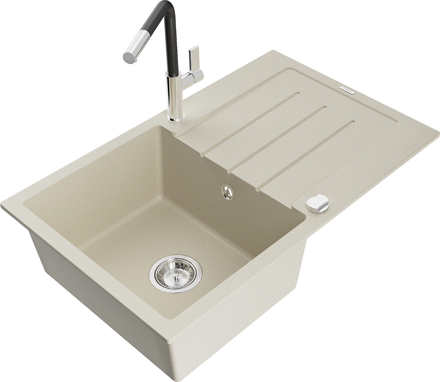 Mexen Bruno granito plautuvė 1 skyrius su lašėjimu ir Flora virtuvės maišytuvu, smėlio - 6513-69-670401-07