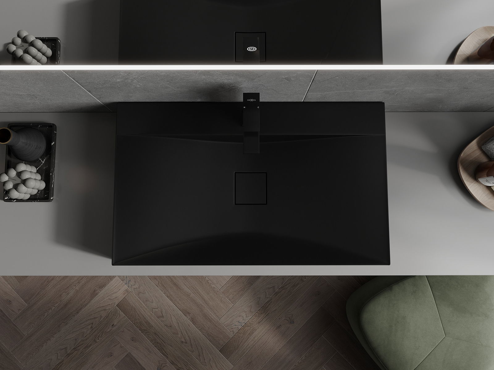 Matte keramikos paviršius puikiai pabrėžia produkto spalvos pobūdį, suteikdamas jai unikalų ir išraiškingą apdailą. Subtili matinės keramikos struktūra pristato eleganciją vonios kambaryje, sukurdama estetinę erdvę.