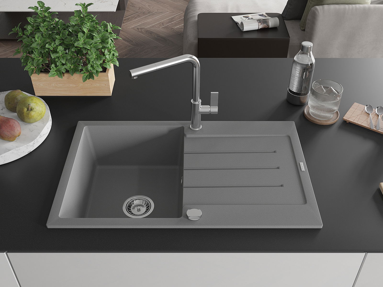 Kriauklės paviršius yra atsparūs dėmėms ir spalvos pasikeitimui, dėl kurio lengva valyti ir ilgą laiką išlaikyti savo spalvą. Estetinis ir praktiškai papildantis kiekvieną virtuvę.