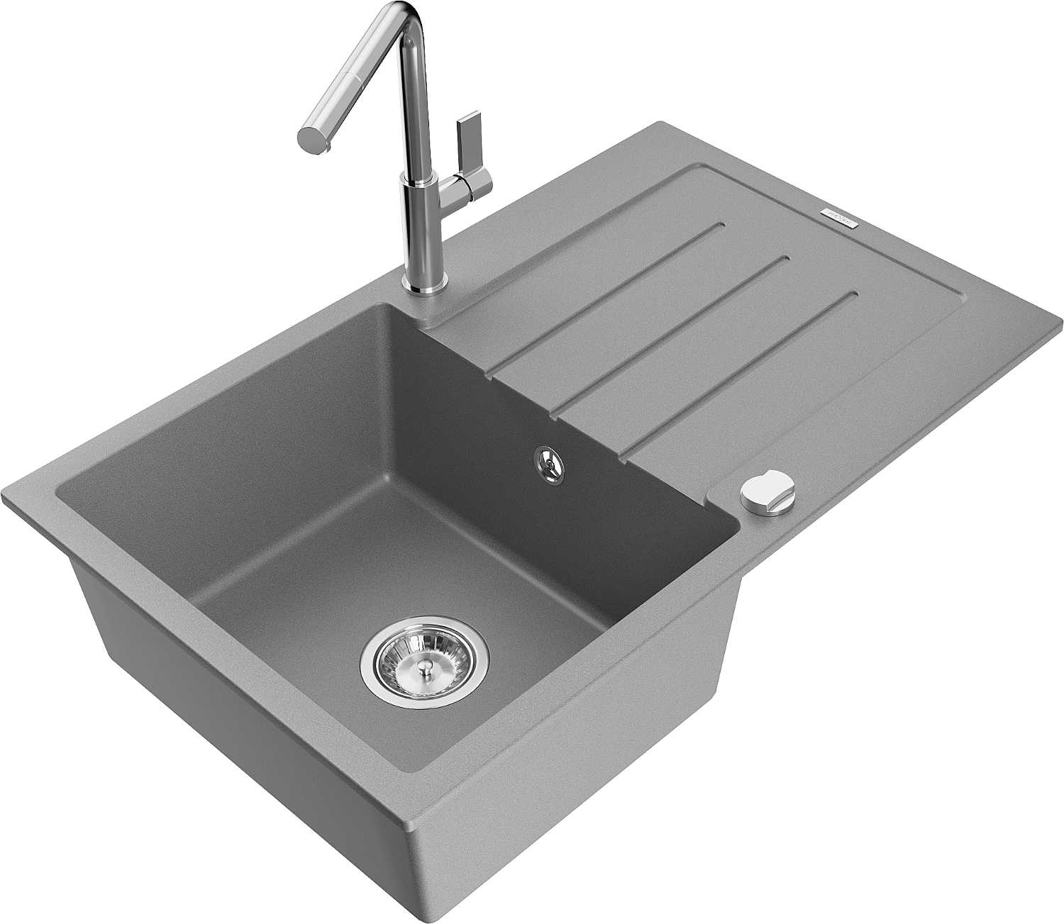 Mexen Bruno granitinis vienos dubens plautuvė su nutekėjančia dalimi ir Flora virtuviniu maišytuvu, pilka - 6513-71-670401-00