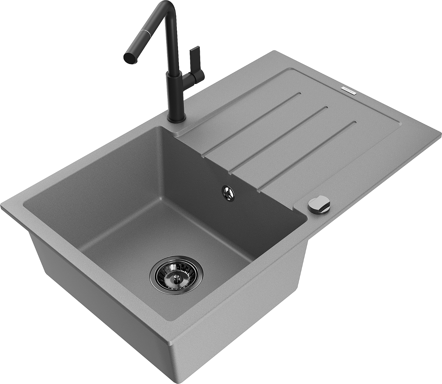 Mexen Bruno granitinis vienos kameros plautuvė su nusausintuvu ir virtuviniu maišytuvu Flora, pilkas - 6513-71-670401-70-B