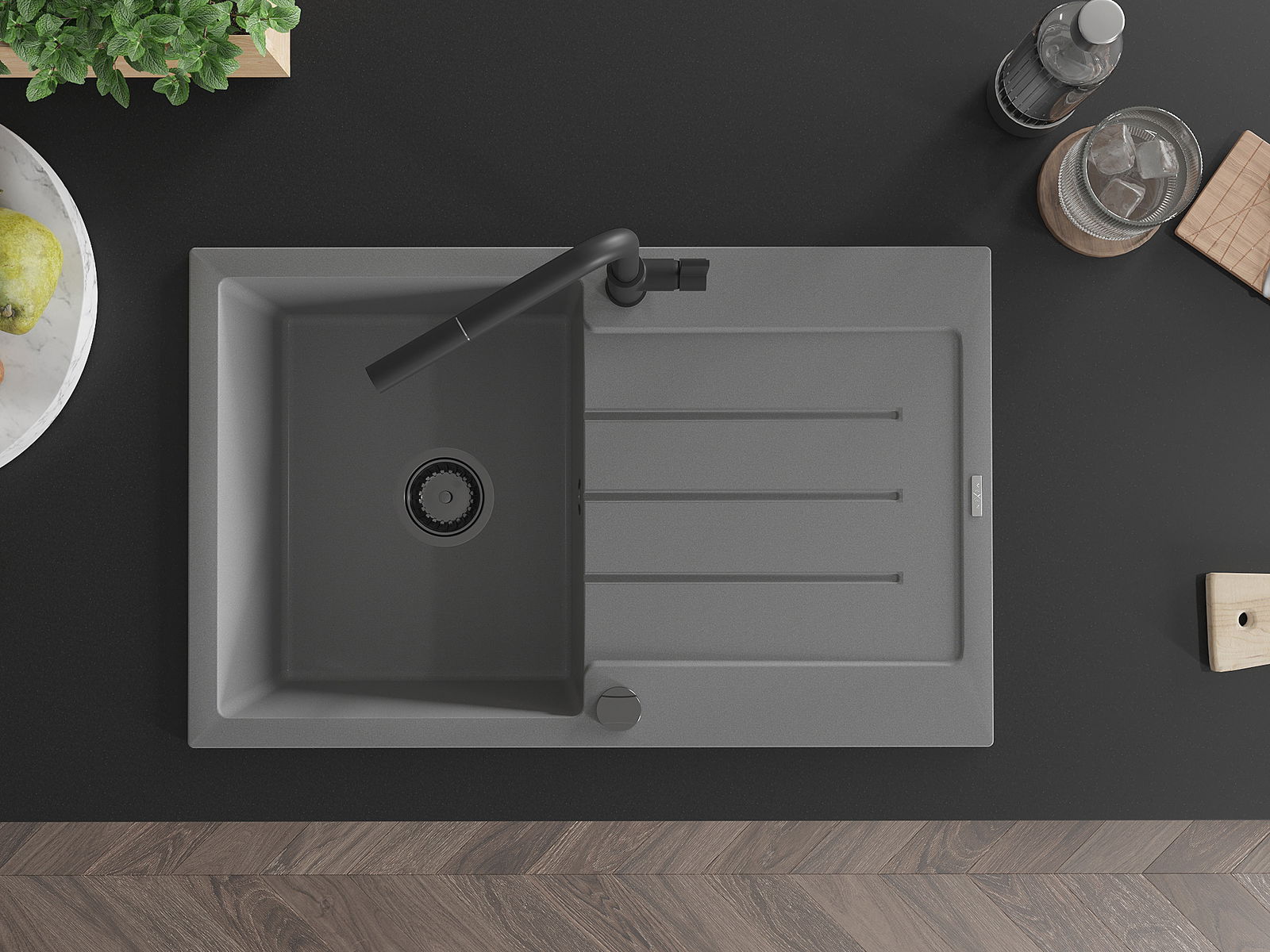 Kriauklės paviršius yra atsparūs dėmėms ir spalvos pasikeitimui, dėl kurio lengva valyti ir ilgą laiką išlaikyti savo spalvą. Estetinis ir praktiškai papildantis kiekvieną virtuvę.