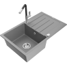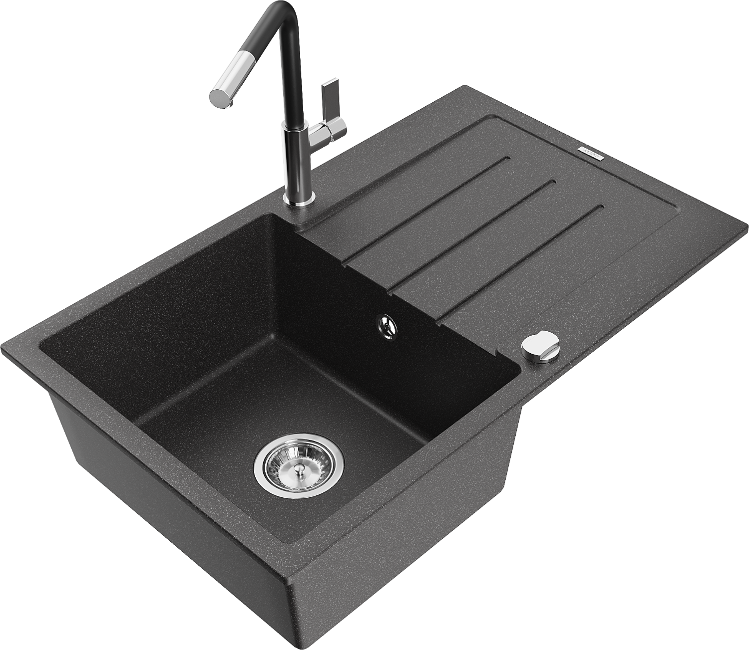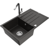 Mexen Bruno granito virtuvės kriauklė 1-dubens su nusausintuvu ir Flora virtuviniu maišytuvu, juoda taškuota - 6513-76-670401-0?