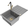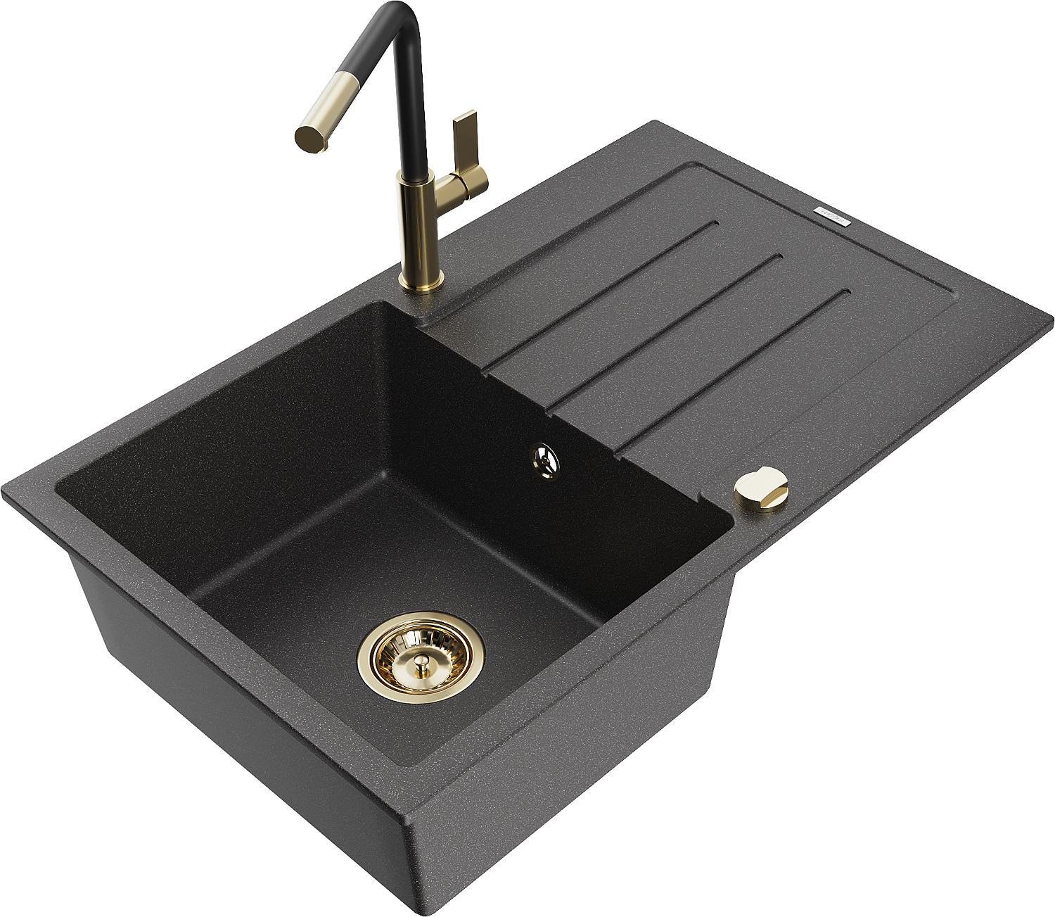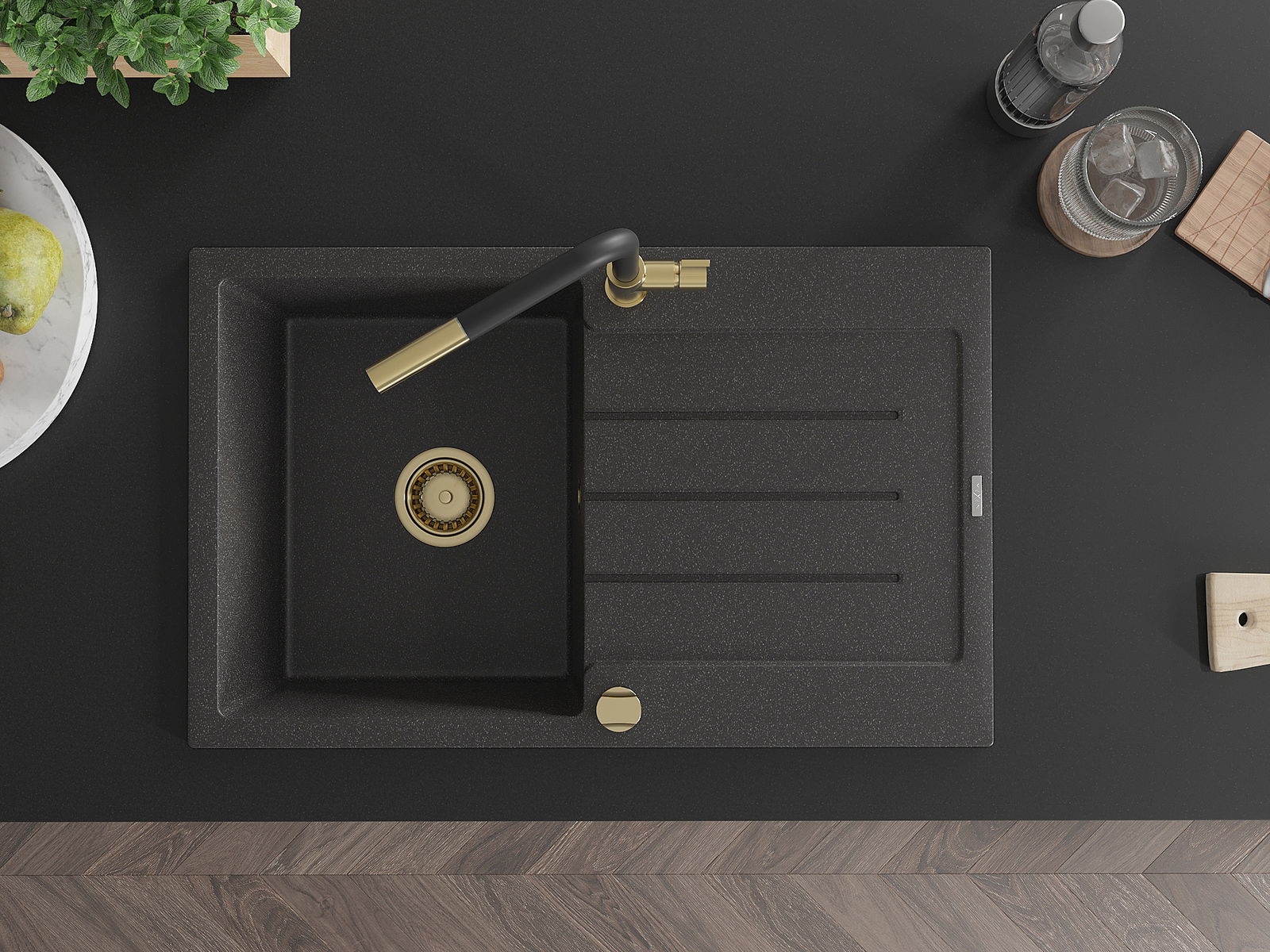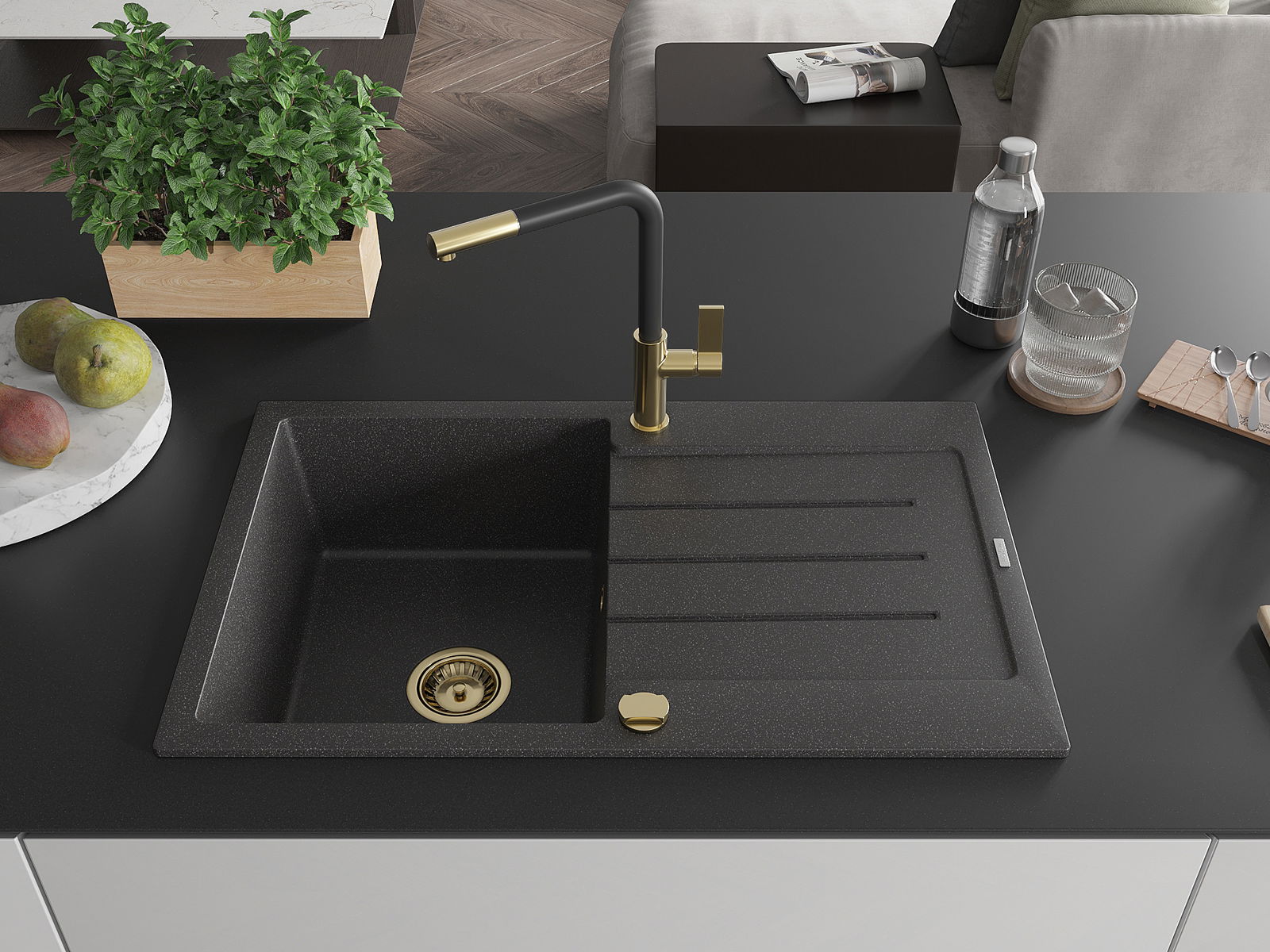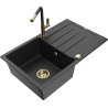 Mexen Bruno vienos kameros granito plautuvė su nusausintuvu ir virtuviniu maišytuvu Flora, juodas dėmėtas
