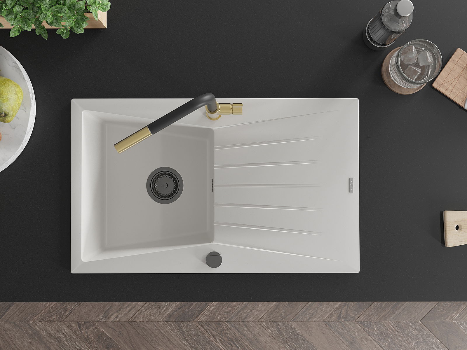 Kriauklės paviršius yra atsparūs dėmėms ir spalvos pasikeitimui, dėl kurio lengva valyti ir ilgą laiką išlaikyti savo spalvą. Estetinis ir praktiškai papildantis kiekvieną virtuvę.