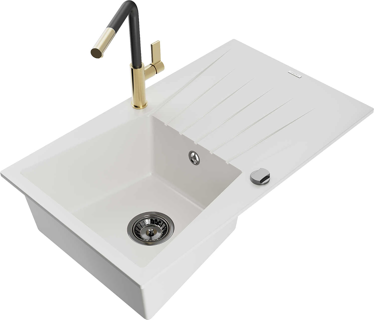 Mexen Cesar granitinis plautuvas su 1 skyriumi, nusausintuvu ir Flora virtuviniu maišytuvu, baltas - 6514-20-670401-57-B