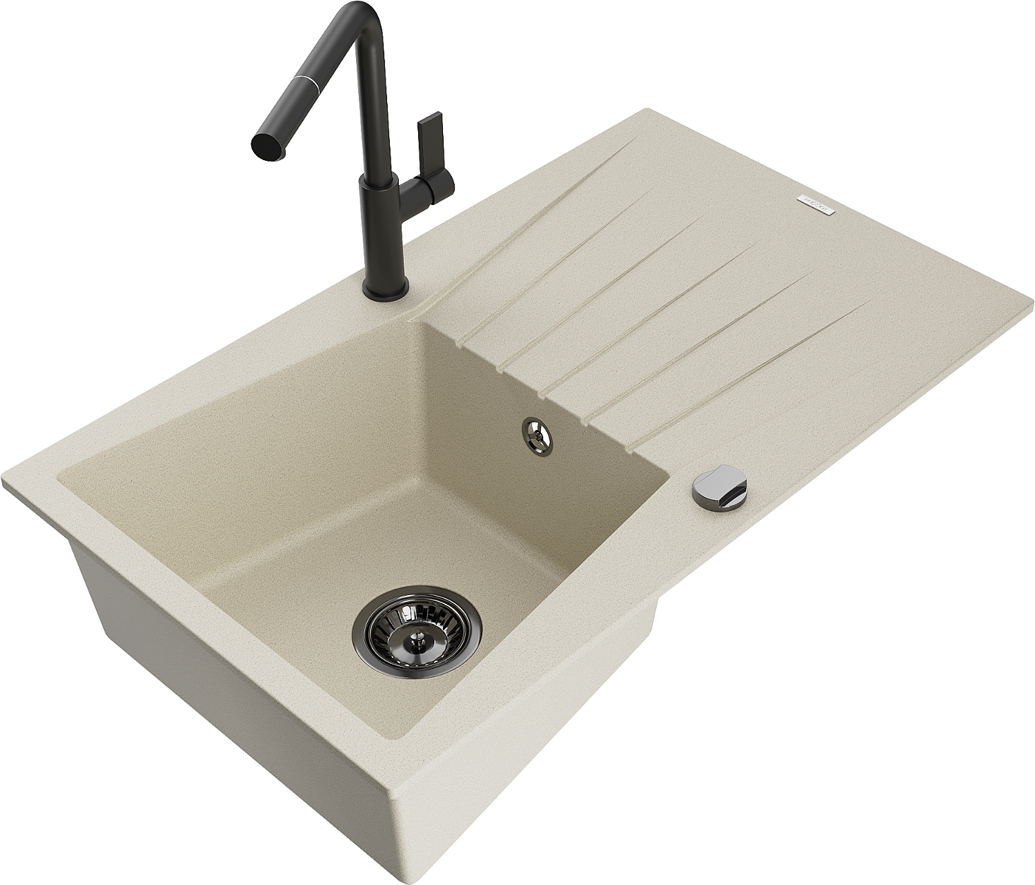 Mexen Cesar granito plautuvė vieno dubens su nusausinimo lentyna ir Flora virtuviniu maišytuvu, smėlio spalvos - 6514-69-670401?