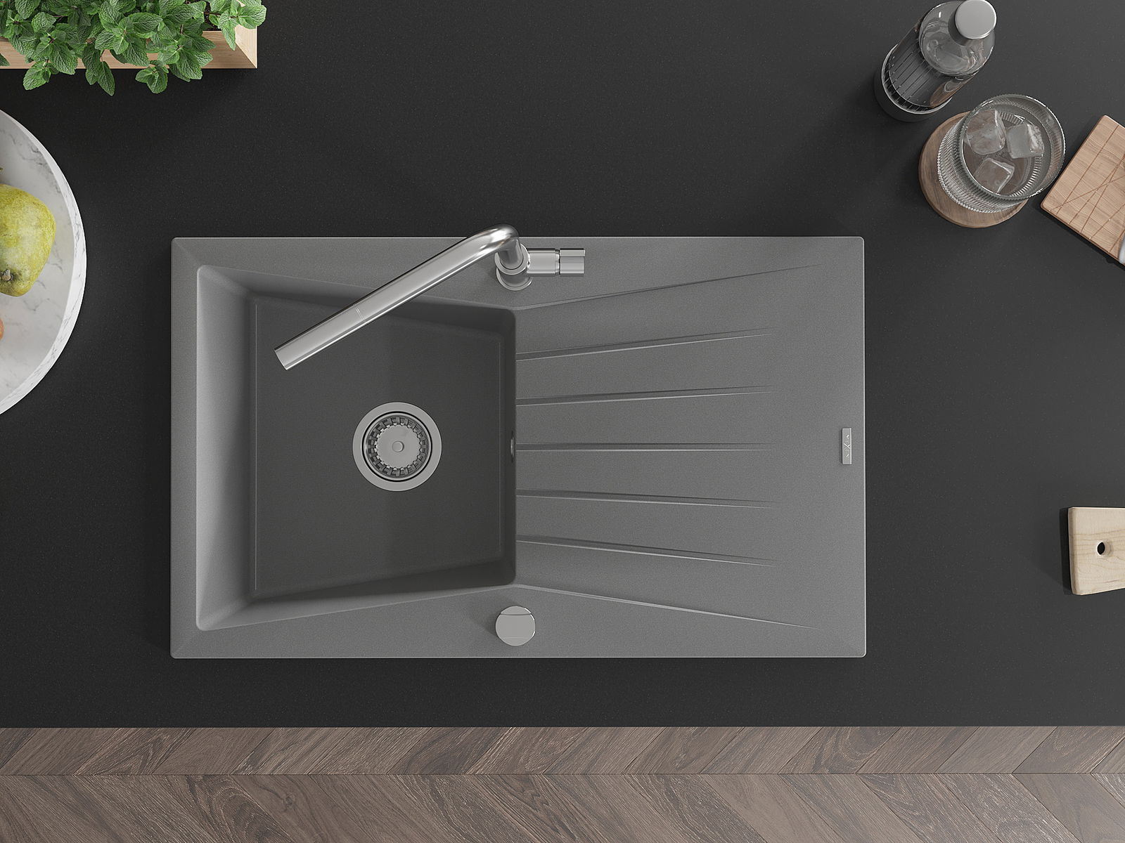 Mexen Cesar granito plautuvė vienos dalies su lašintuvu ir virtuviniu maišytuvu Flora, pilka - 6514-71-670401-00
