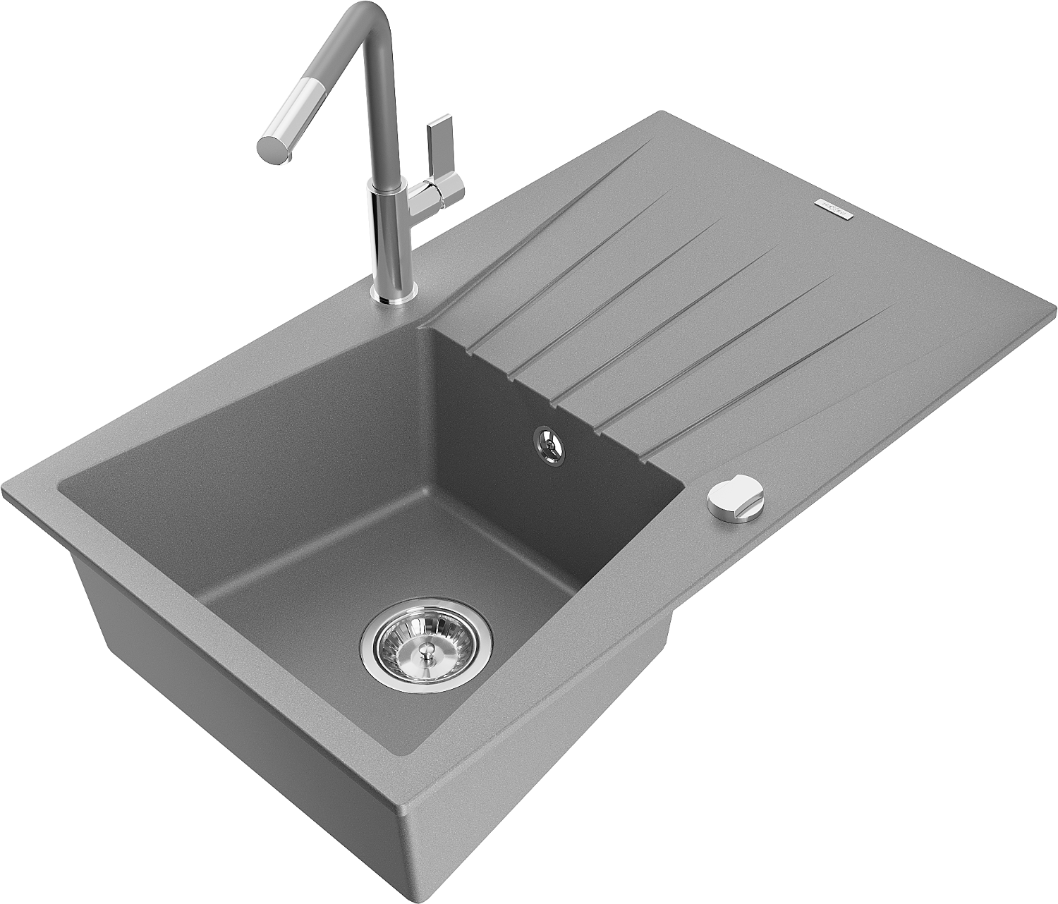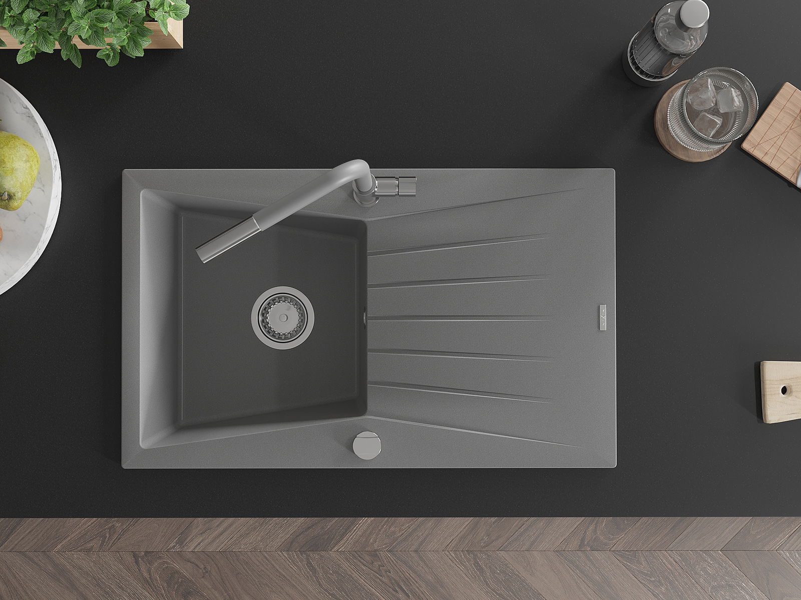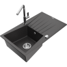 Mexen Cesar granitinis vienos kameros plautuvas su nusausintuvu ir virtuviniu maišytuvu Flora, pilkas - 6514-71-670401-06