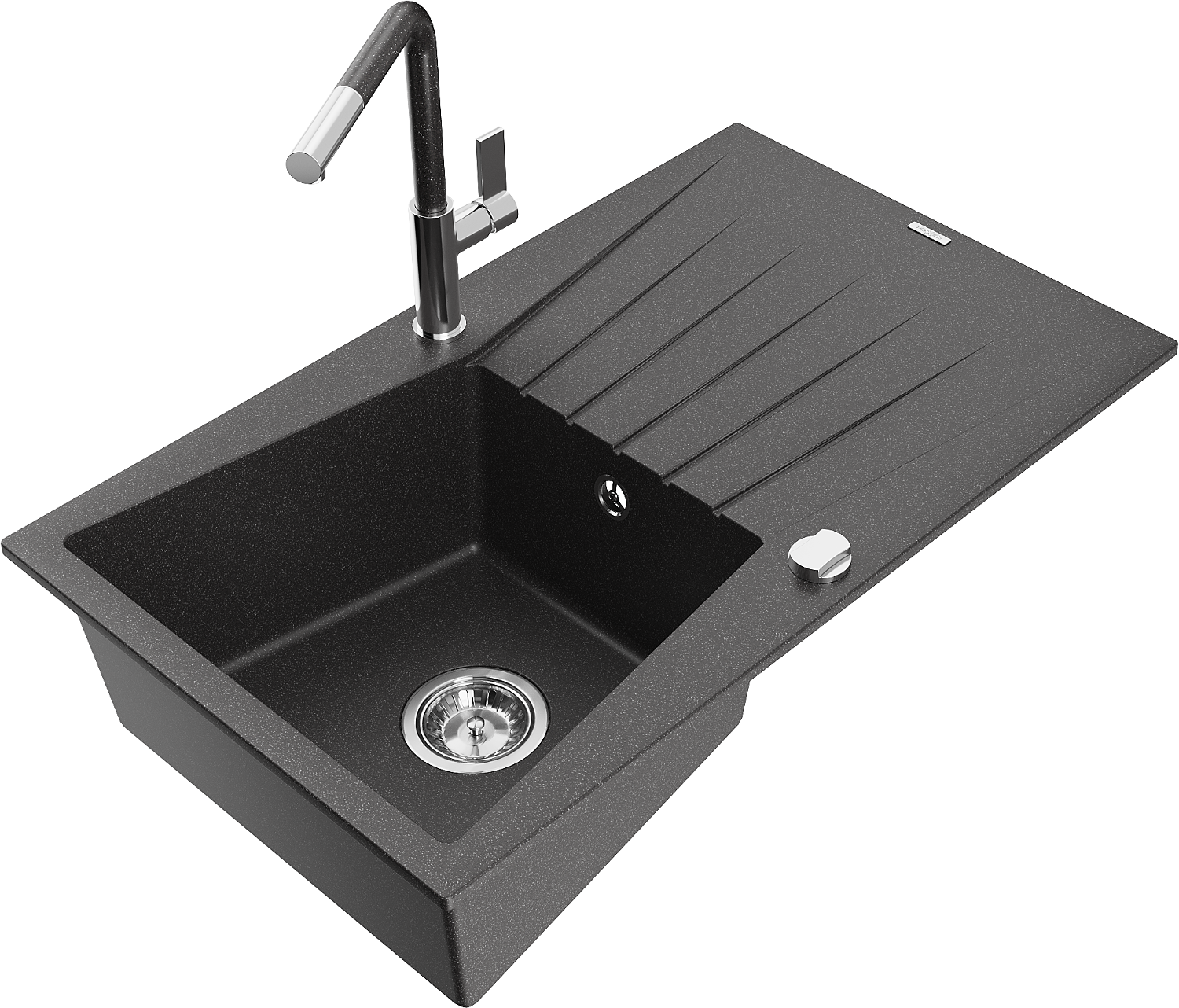 Mexen Cesar 1 skyrių granito plautuvė su nusausinimo dalimi ir Flora virtuviniu maišytuvu, juodas margas - 6514-76-670401-08
