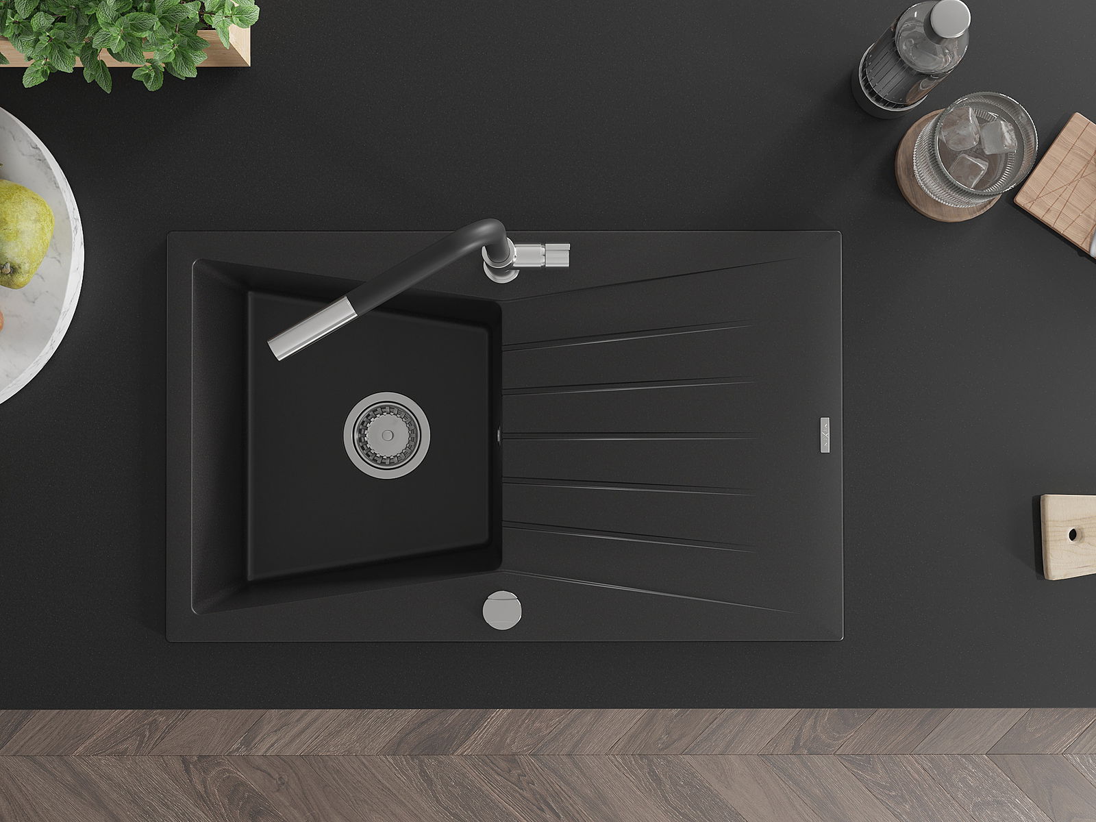 Kriauklės paviršius yra atsparūs dėmėms ir spalvos pasikeitimui, dėl kurio lengva valyti ir ilgą laiką išlaikyti savo spalvą. Estetinis ir praktiškai papildantis kiekvieną virtuvę.