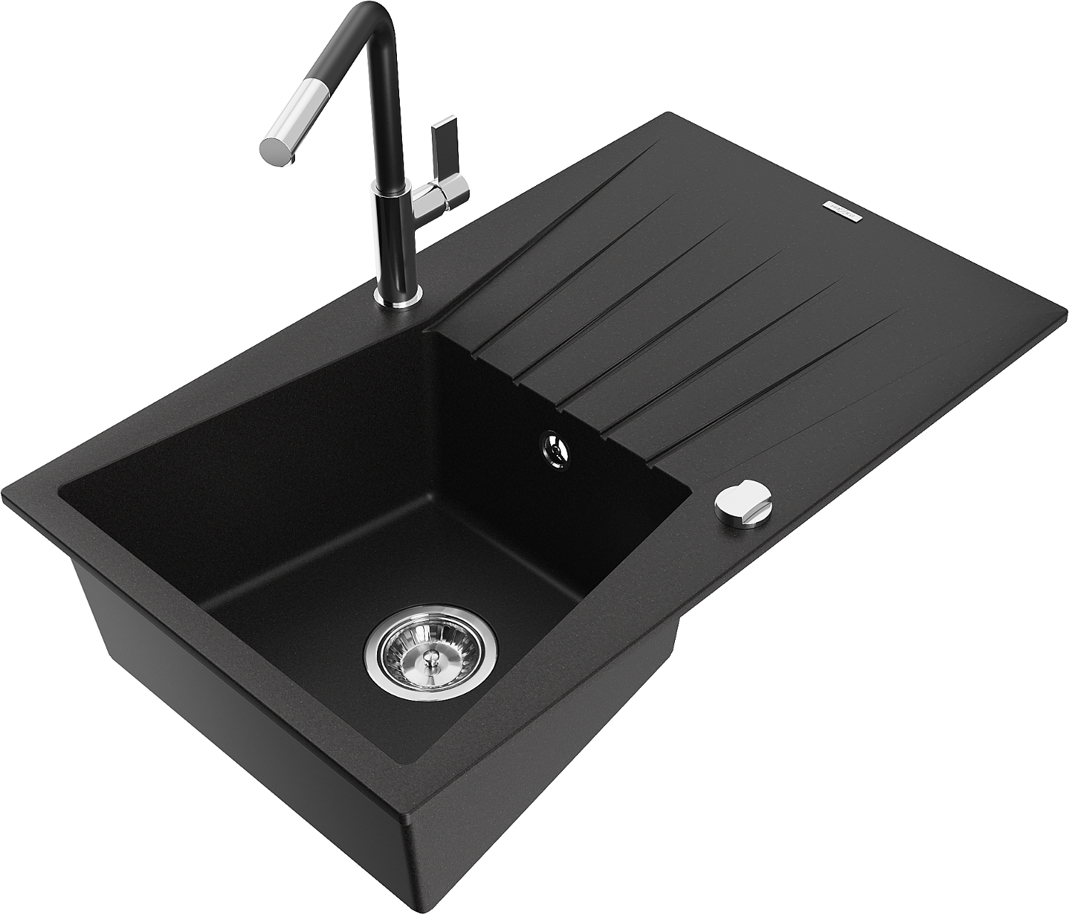 Mexen Cesar granito plautuvė su viena kamera ir nutekėjimu bei Flora virtuvės maišytuvu, juodas - 6514-77-670401-07