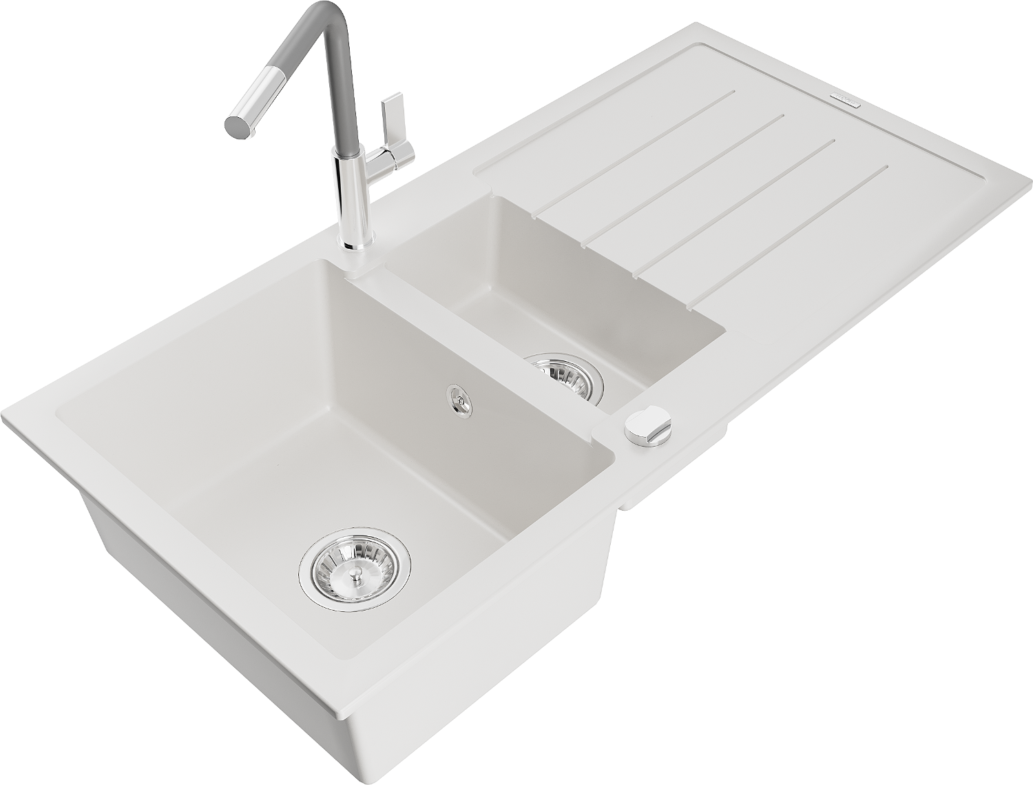 Mexen Andres granitinė 1,5 kambario plautuvė su lašintuvu ir Flora virtuviniu maišytuvu, balta - 6515-20-670401-06