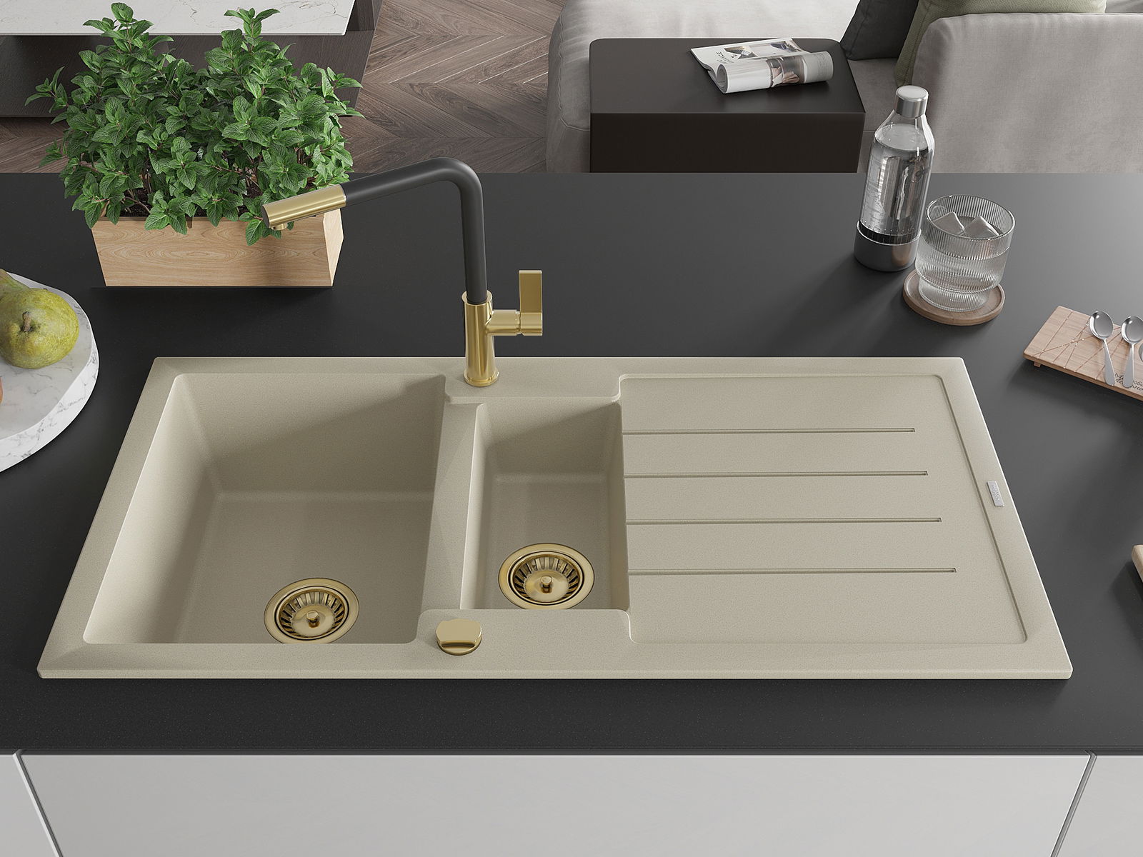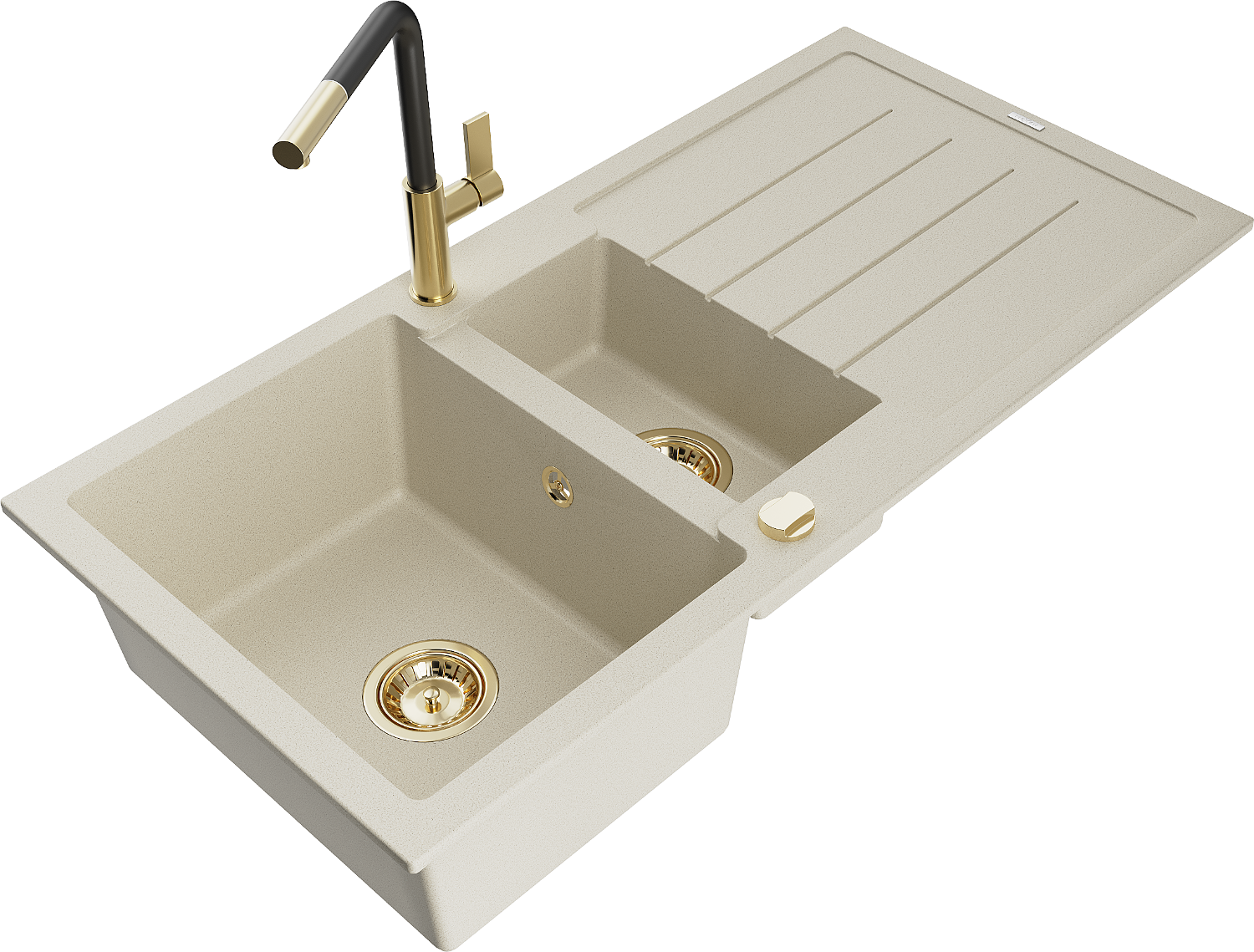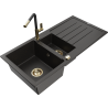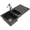 Mexen Andres granitinė 1,5 kamerų virtuvės kriauklė su nusausindama ir Flora maišytuvu, smėlio spalvos