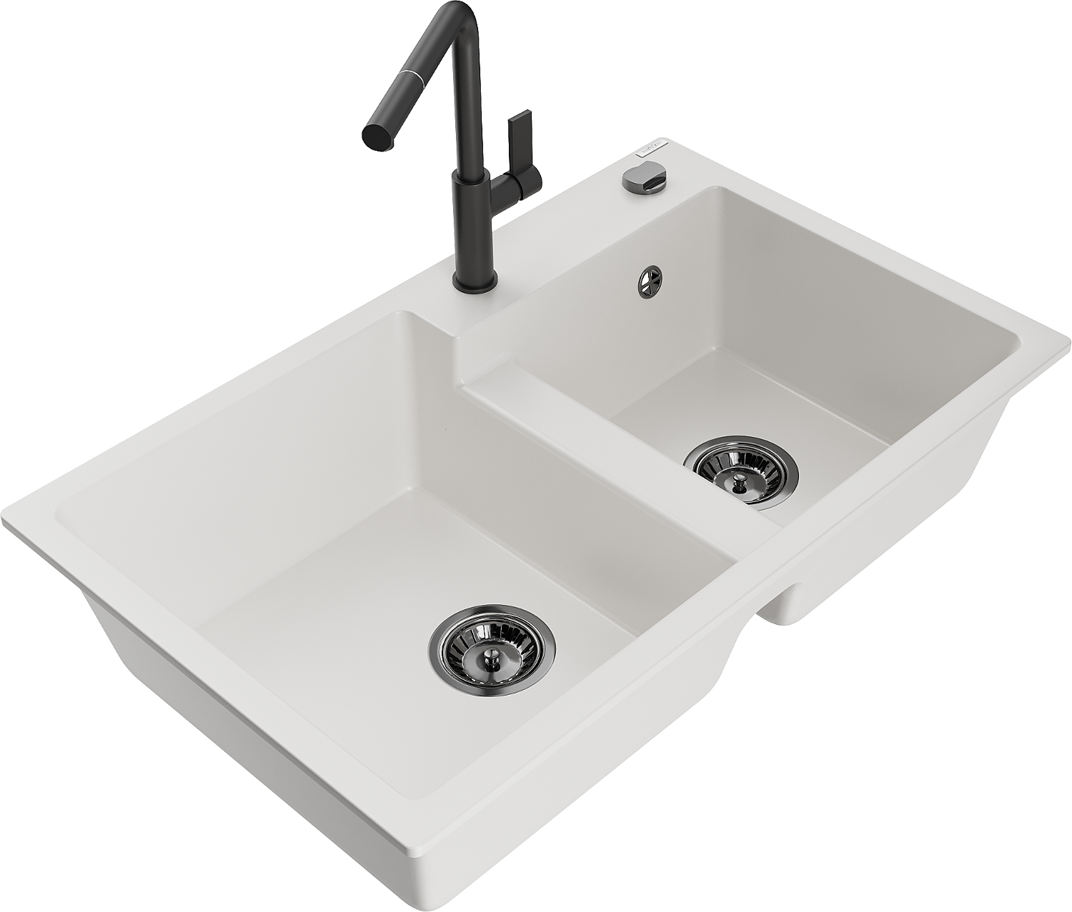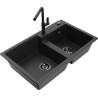 Mexen Tomas granitinė dviejų skyrių plautuvė su Flora virtuviniu maišytuvu, balta - 6516-20-670401-70-B
