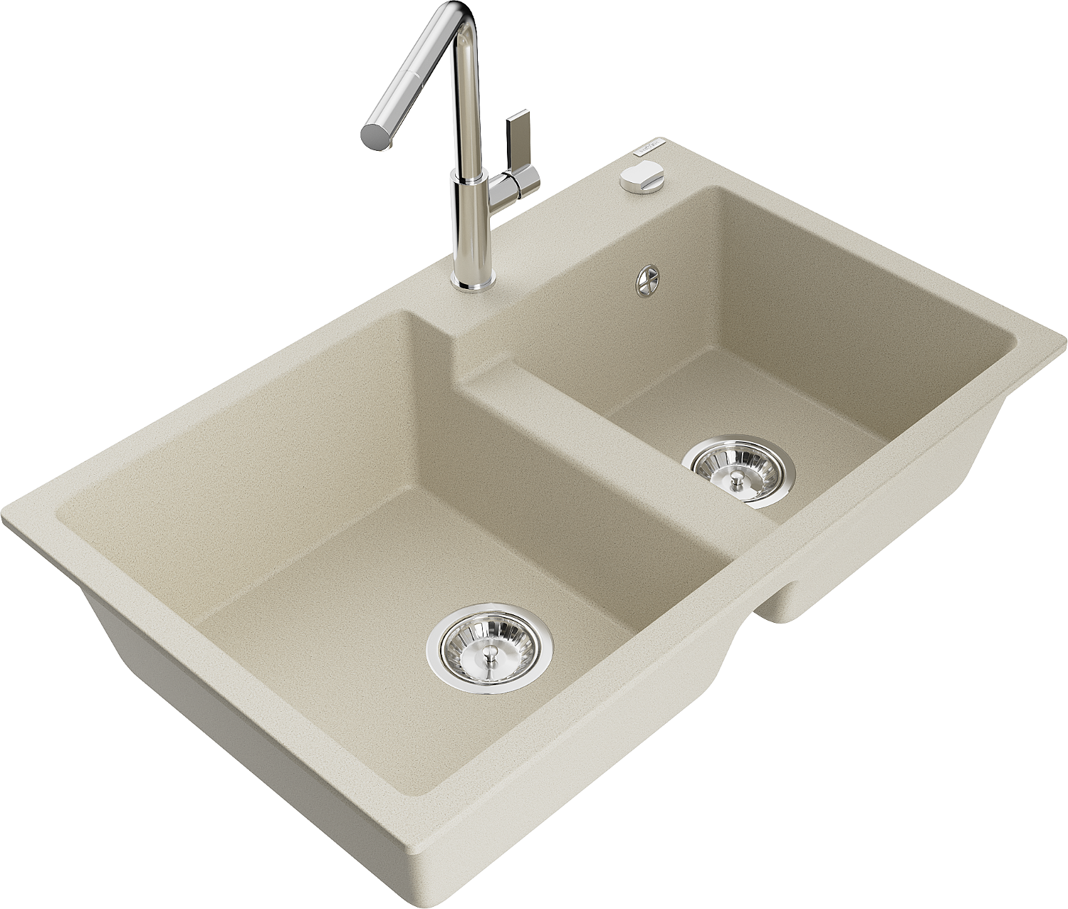 Mexen Tomas granito plautuvė su 2 skyriais ir virtuviniu maišytuvu Flora, smėlio - 6516-69-670401-00