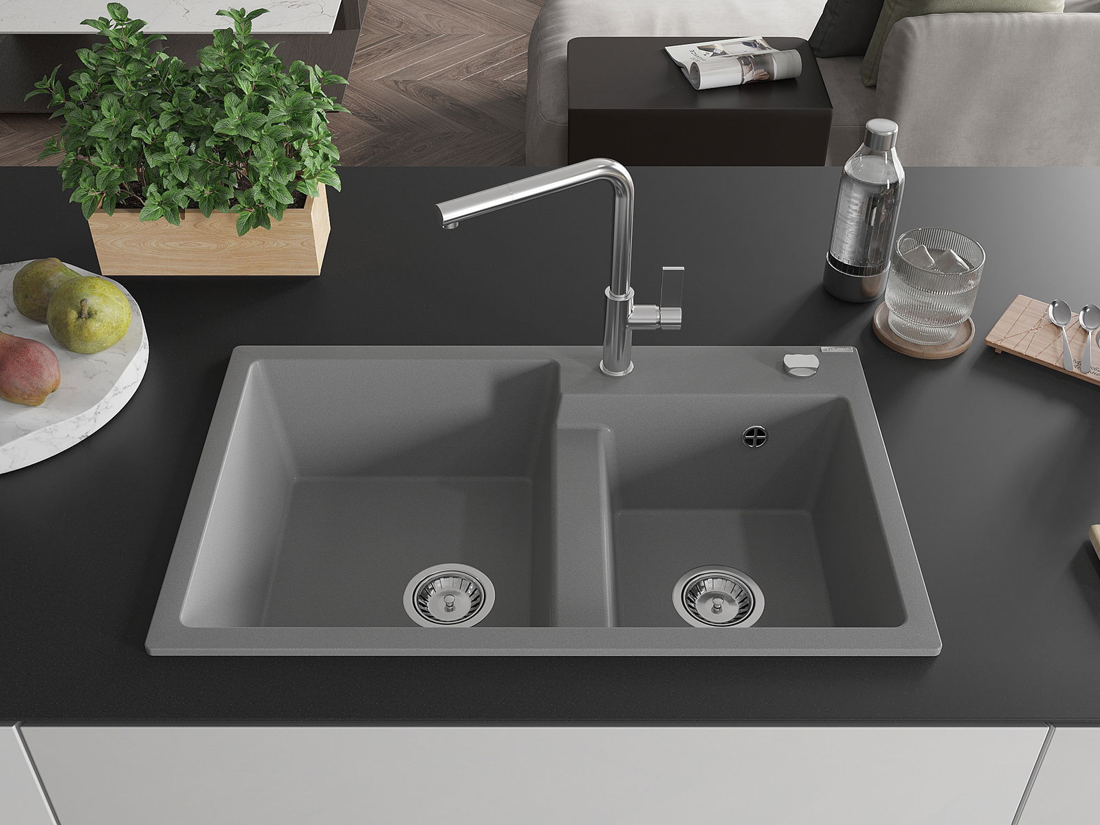 Kriauklės paviršius yra atsparus dėmėms ir spalvos pokyčiams, todėl jį lengva prižiūrėti ir jis išlaiko savo spalvą ilgą laiką. Estetiškai ir praktiškai papildo kiekvieną virtuvę.